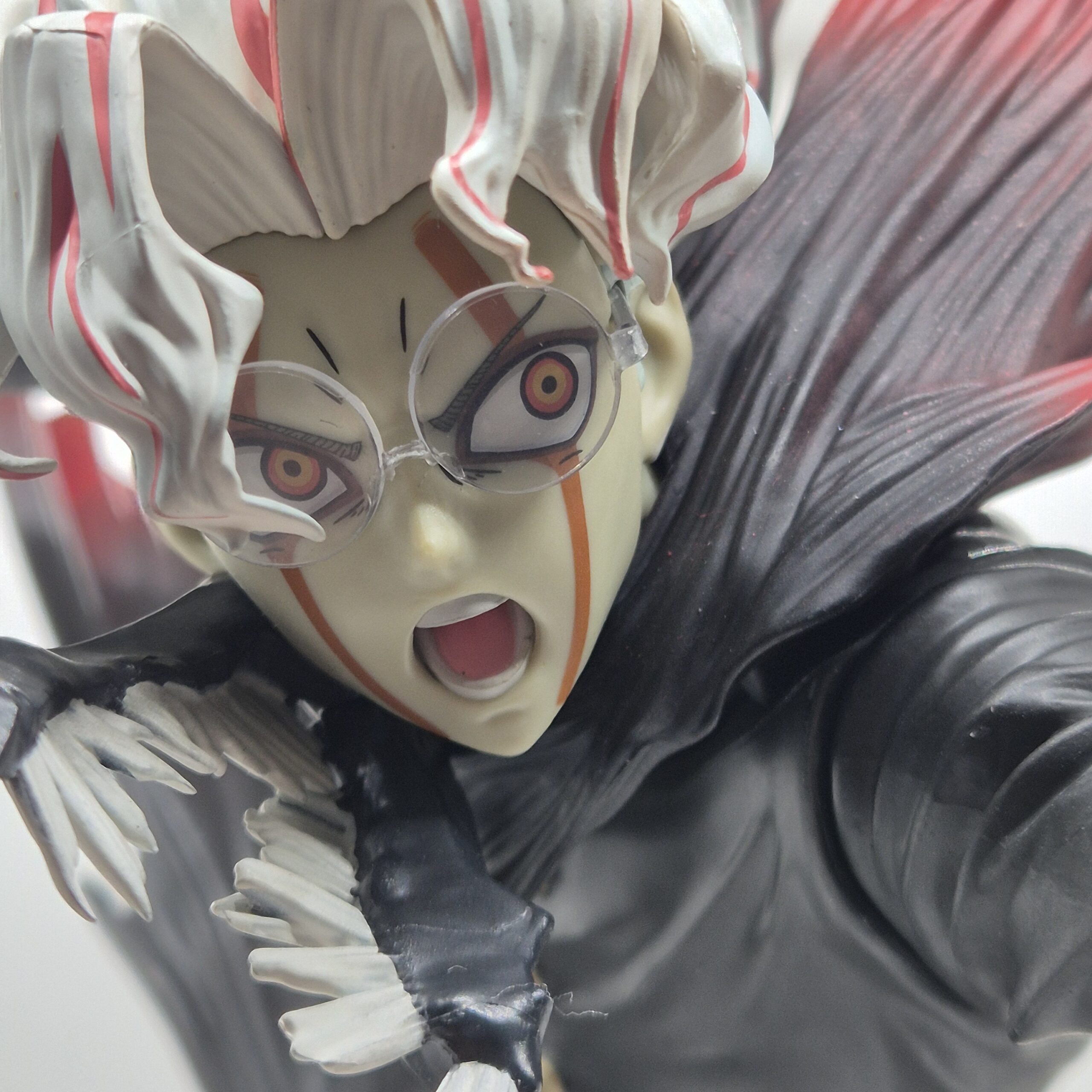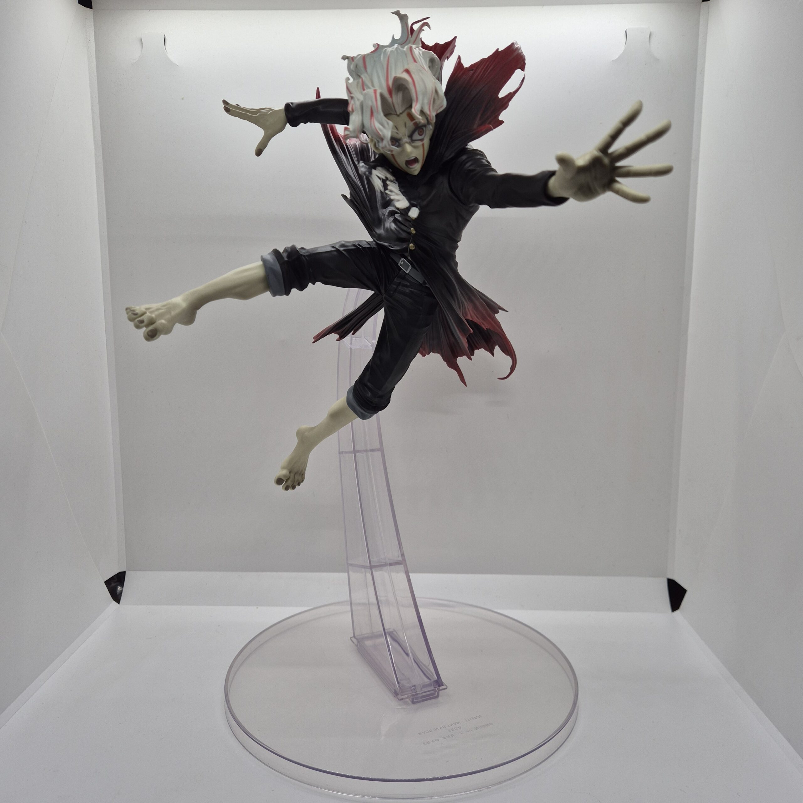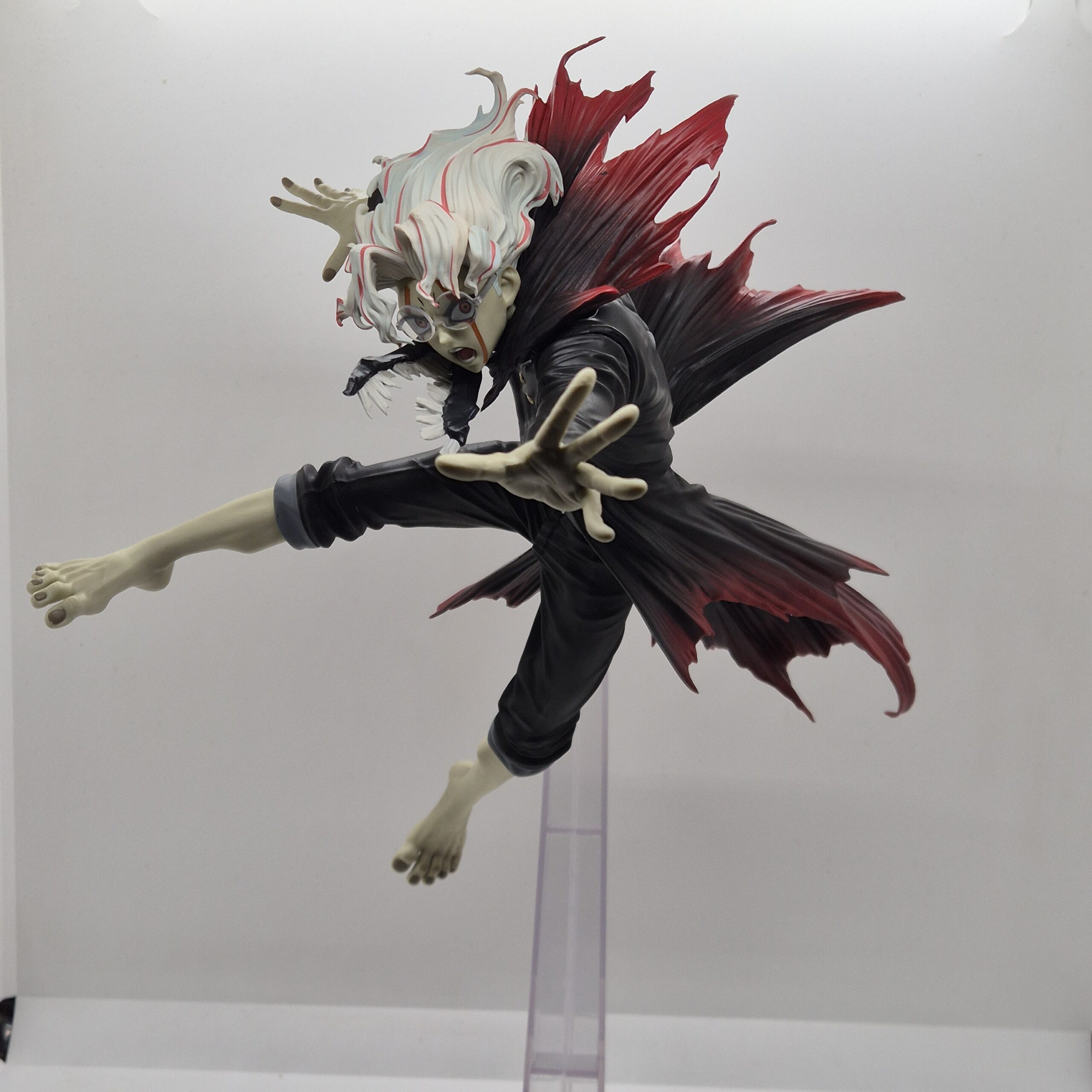La scultura rappresenta Okarun nella sua forma trasformata, caratterizzata da un aspetto più aggressivo e sovrannaturale rispetto alla sua normale identità di studente. Il corpo è leggermente inclinato e teso, con una postura che suggerisce velocità e tensione, come se il personaggio fosse sul punto di scattare o lanciarsi in azione. Questo tipo di posa contribuisce a dare alla figure una forte sensazione di energia, rendendola particolarmente d’impatto quando esposta.