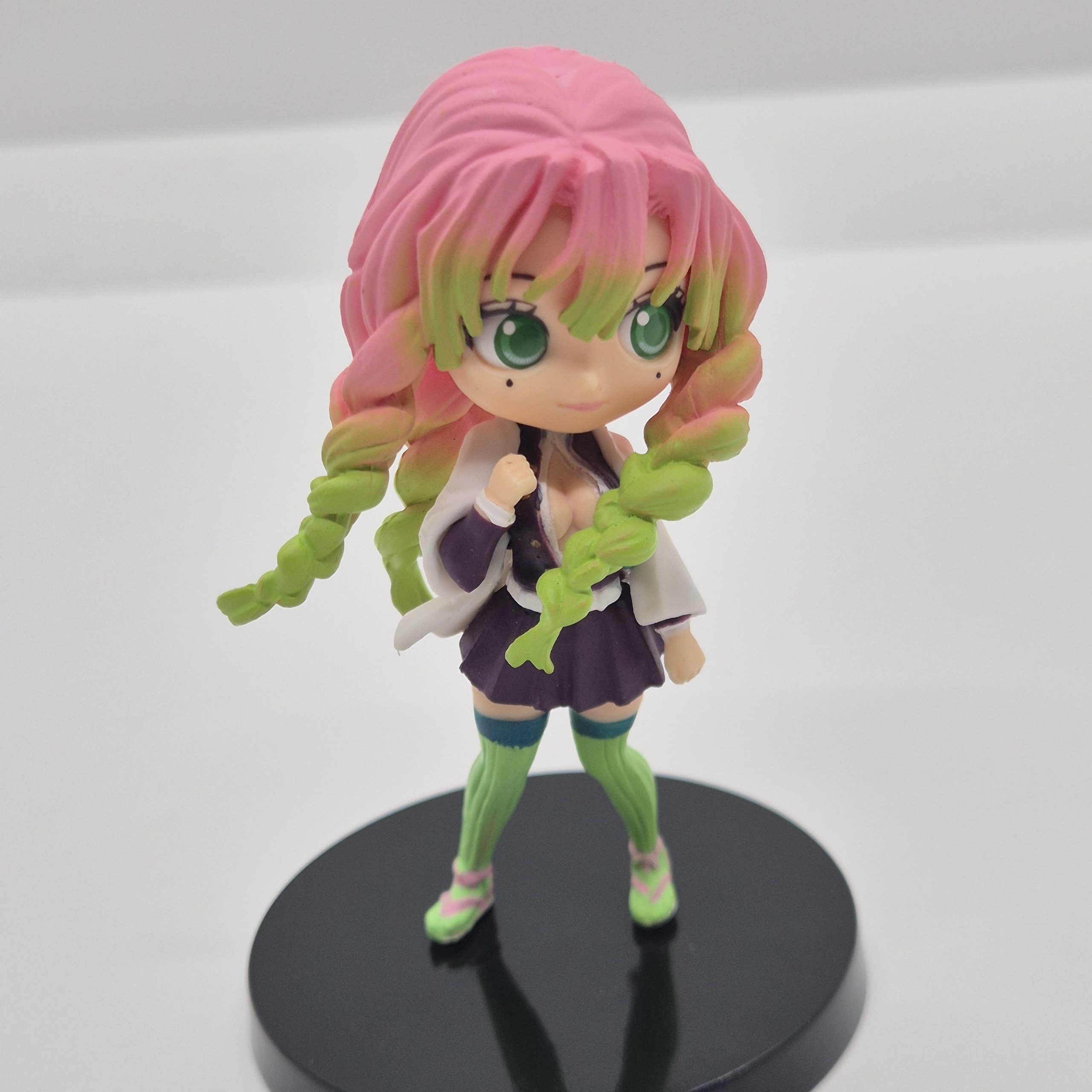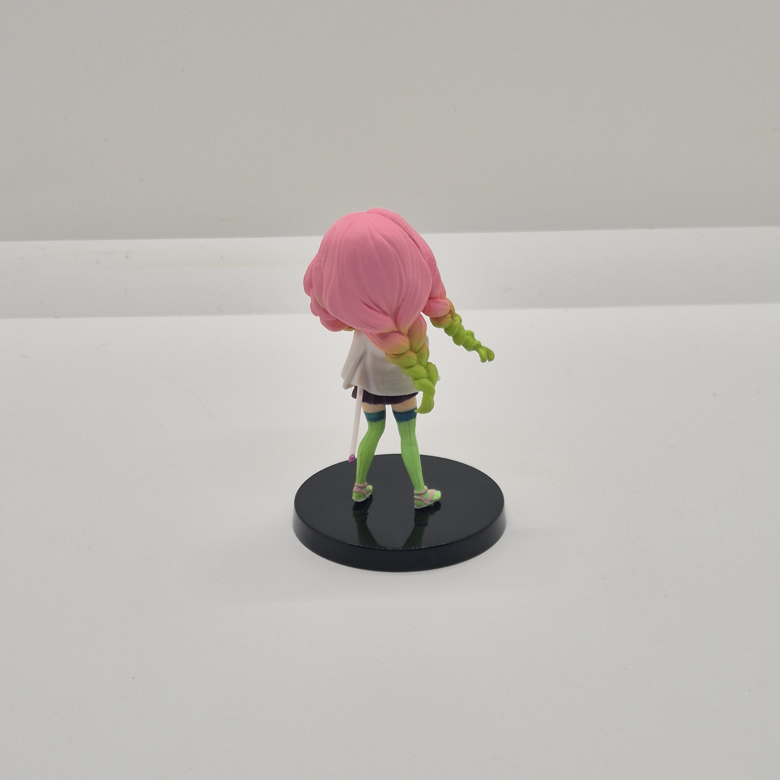 Realizzata con il design iconico Q Posket, la statuetta mette in risalto il caratteristico stile di Mitsuri con linee morbide e dettagli curati. Mitsuri è rappresentata nel suo classico abbigliamento da pilastro, con la sua uniforme personalizzata che si distingue per l’equilibrio tra eleganza e praticità. Il suo mantello bianco è scolpito con cura, e l’accento rosa sulle estremità cattura perfettamente il suo stile unico. I suoi capelli, con la sfumatura di verde pastello che si fonde al rosa brillante, sono riprodotti in modo impeccabile, evidenziando l’iconicità del personaggio.