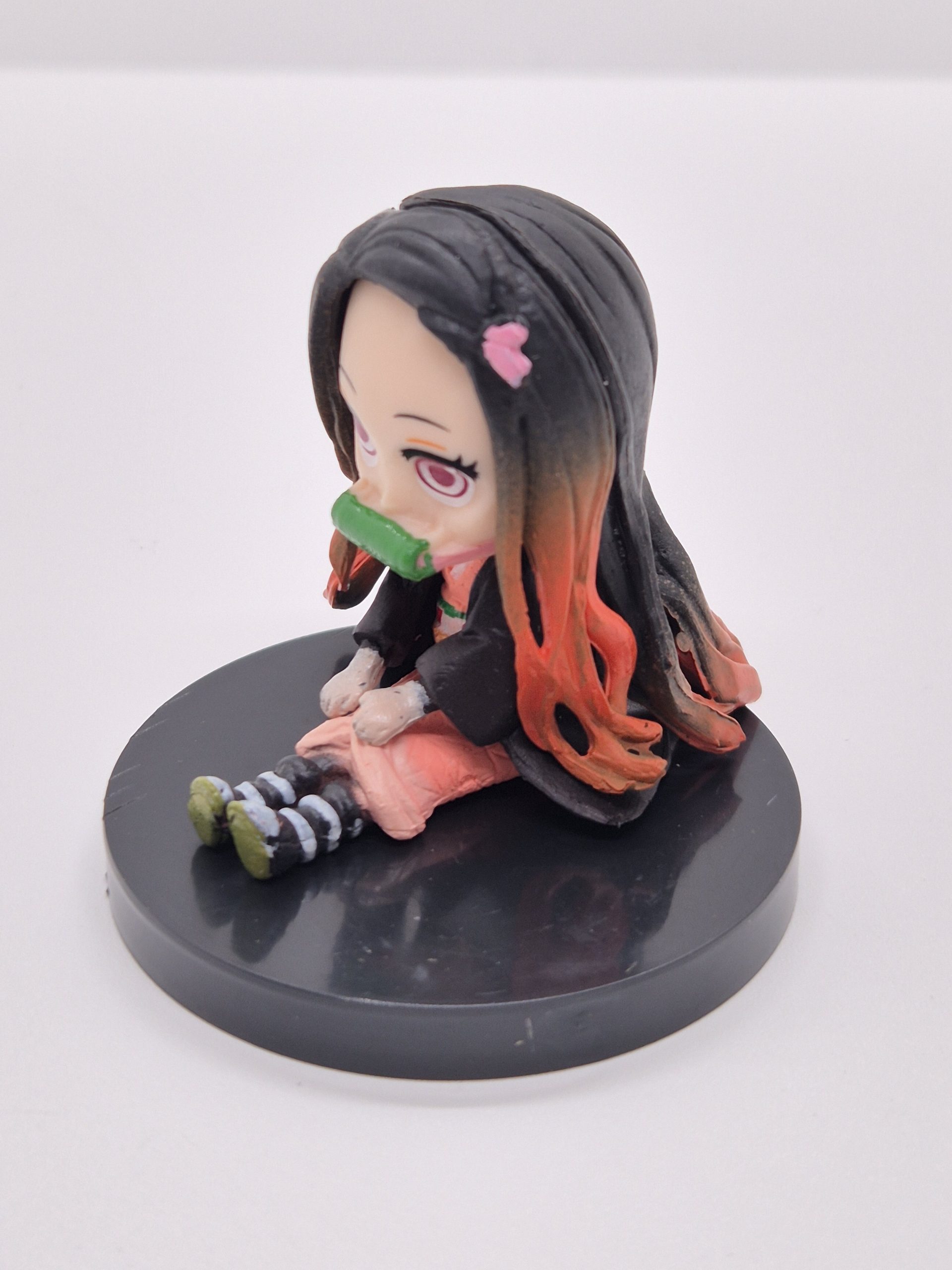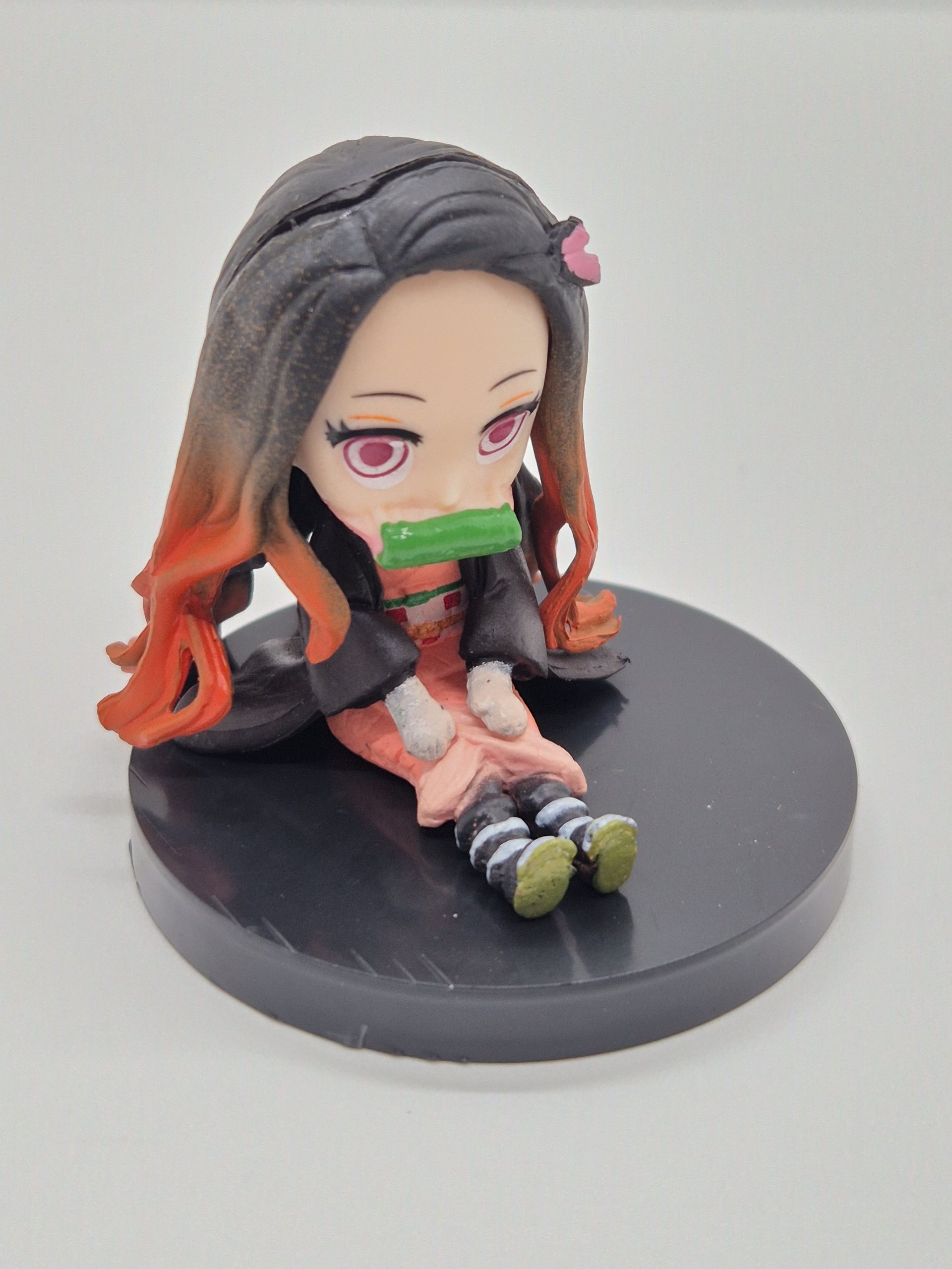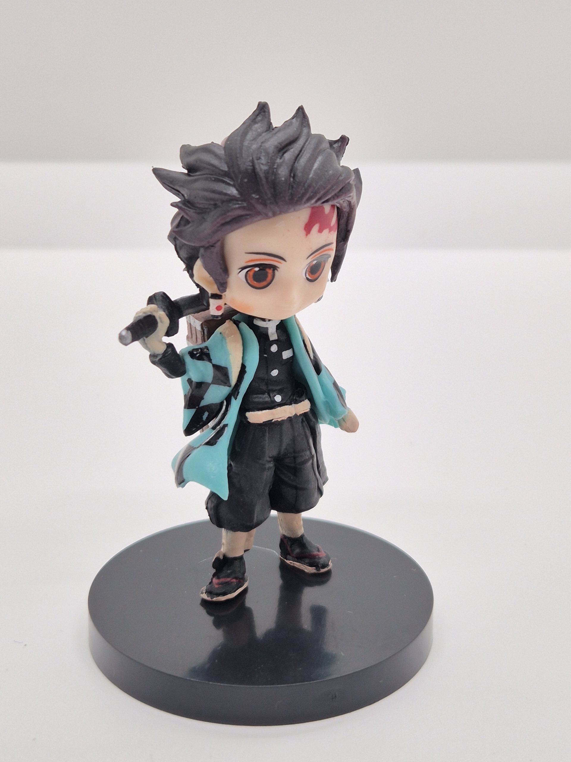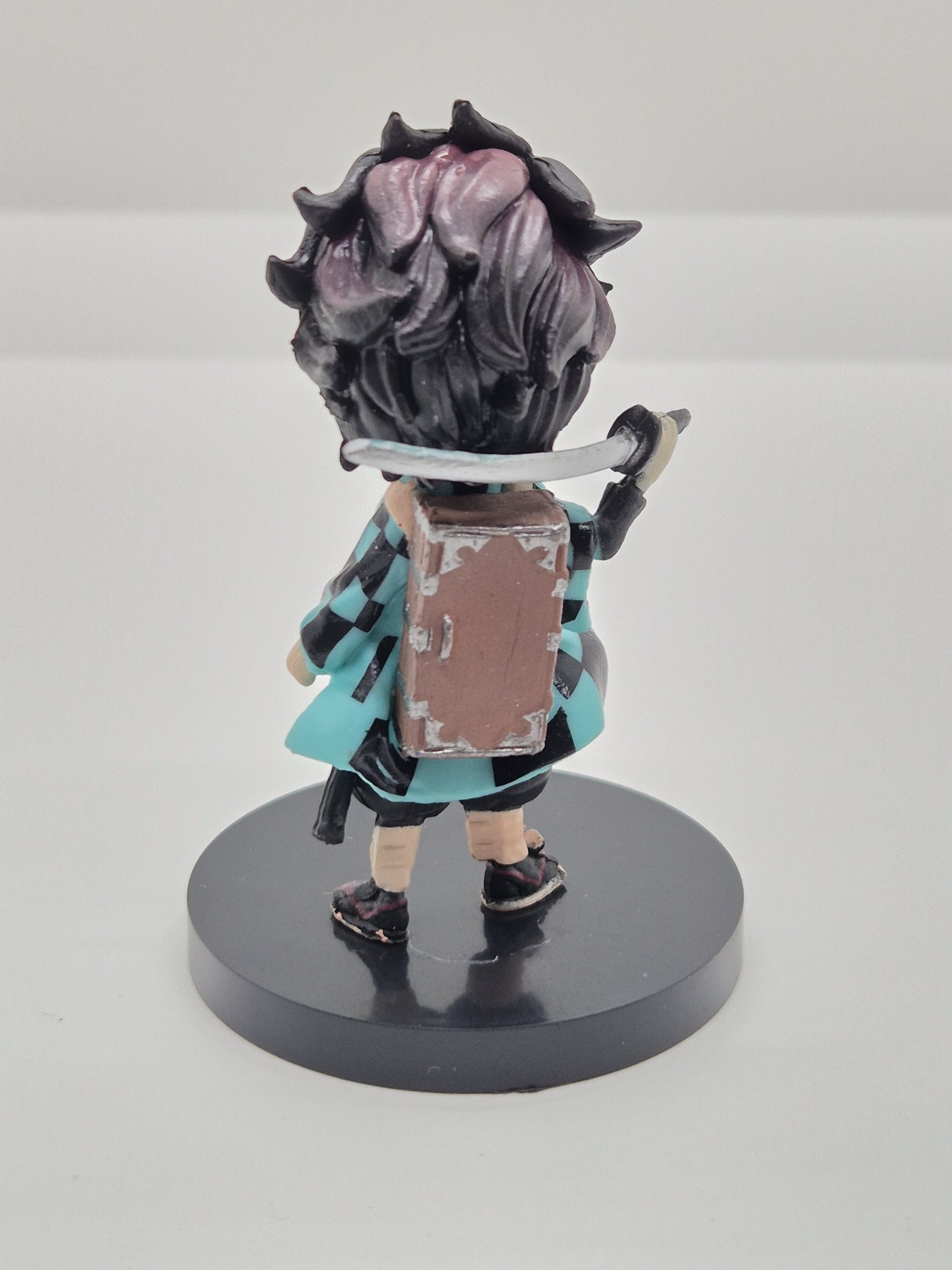 Tanjiro Kamado, il protagonista coraggioso e determinato, è rappresentato con il suo caratteristico haori a scacchi verdi e neri e la sua katana nichirin pronta all’azione. Il suo volto esprime la concentrazione e la determinazione che lo contraddistinguono mentre affronta le temibili minacce dei demoni. Nonostante le piccole dimensioni, i dettagli sono minuziosi, con attenzione posta anche alla sua iconica cicatrice sulla fronte.