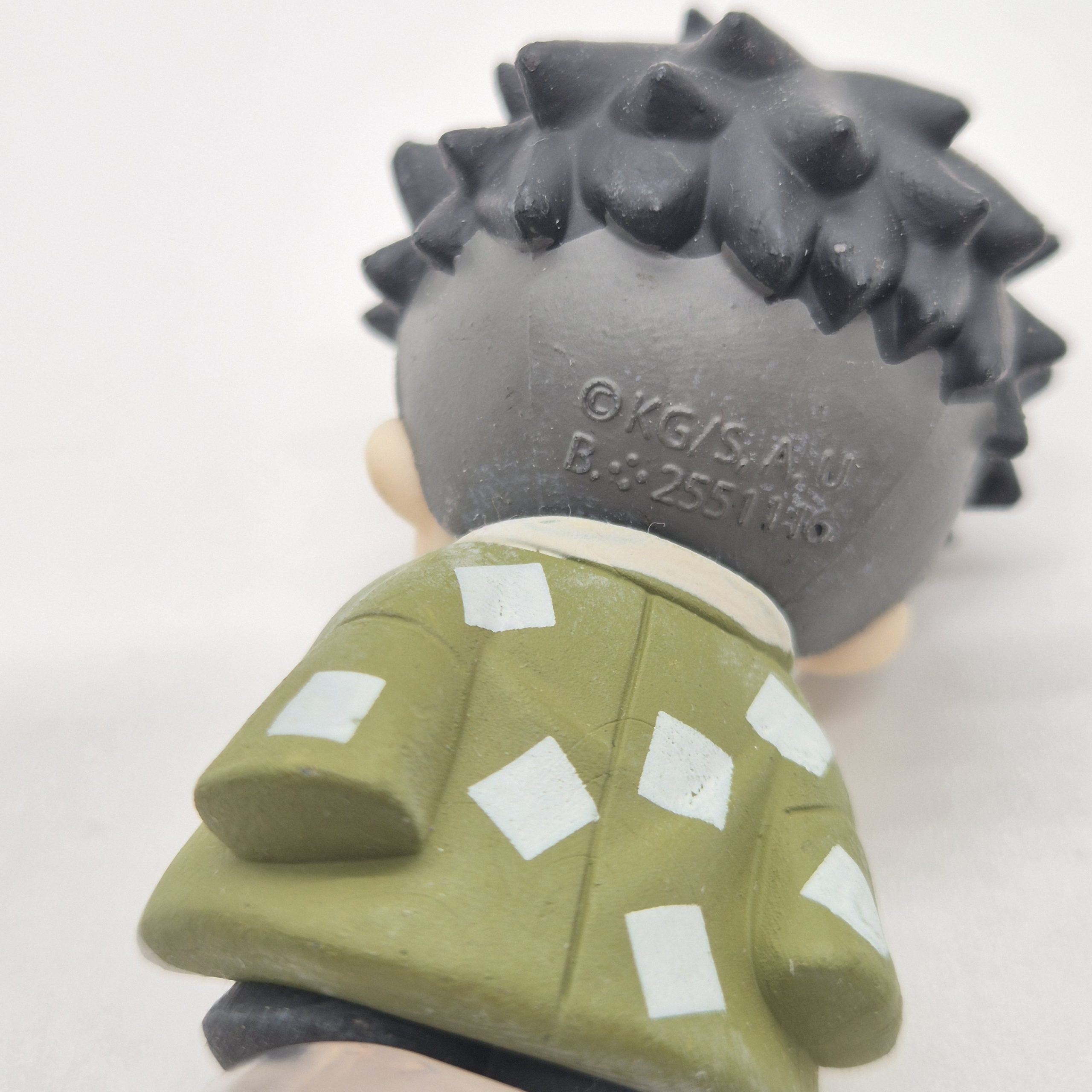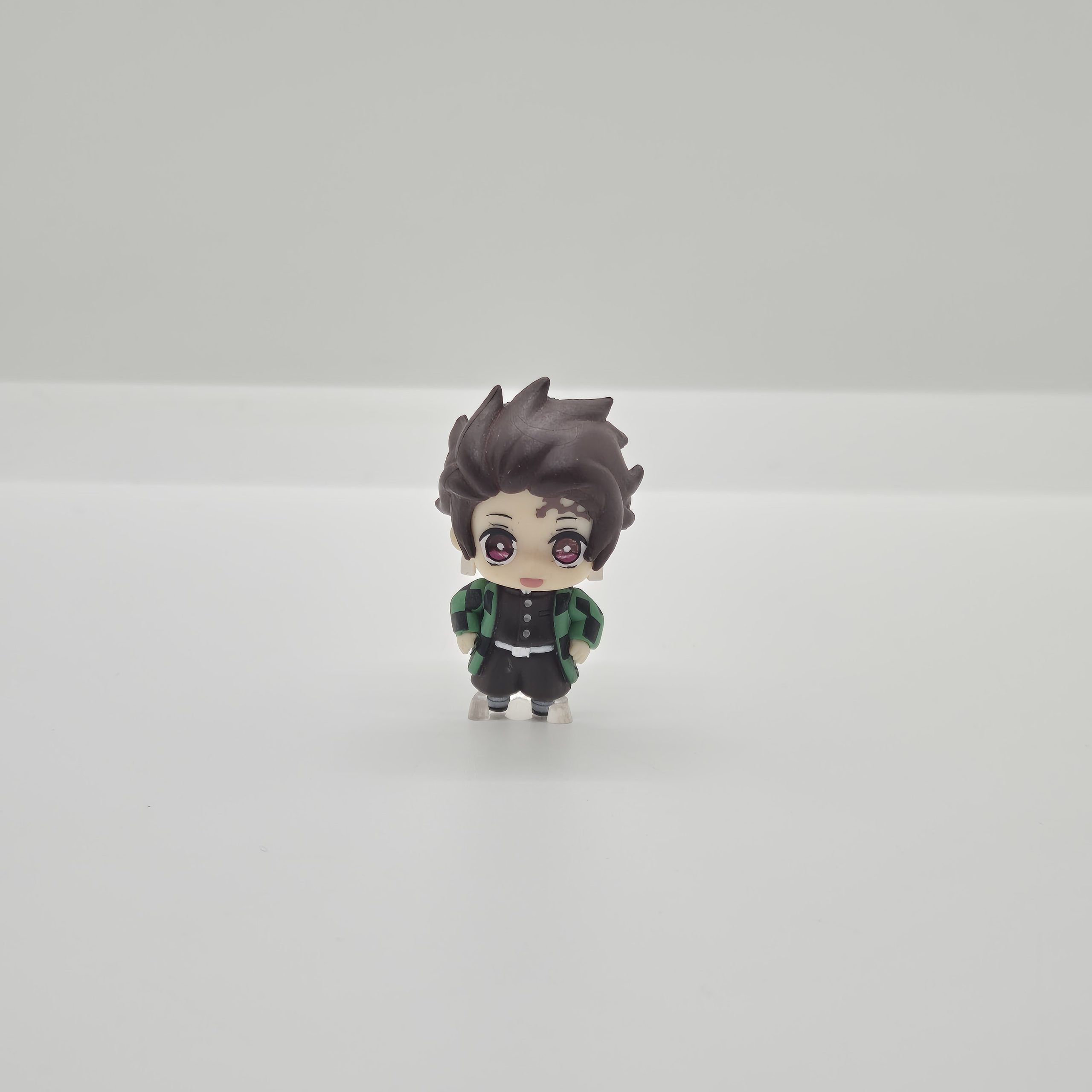 - Tanjiro Kamado è rappresentato con la sua iconica haori a quadri e la spada, trasmettendo il suo spirito combattivo e la determinazione.