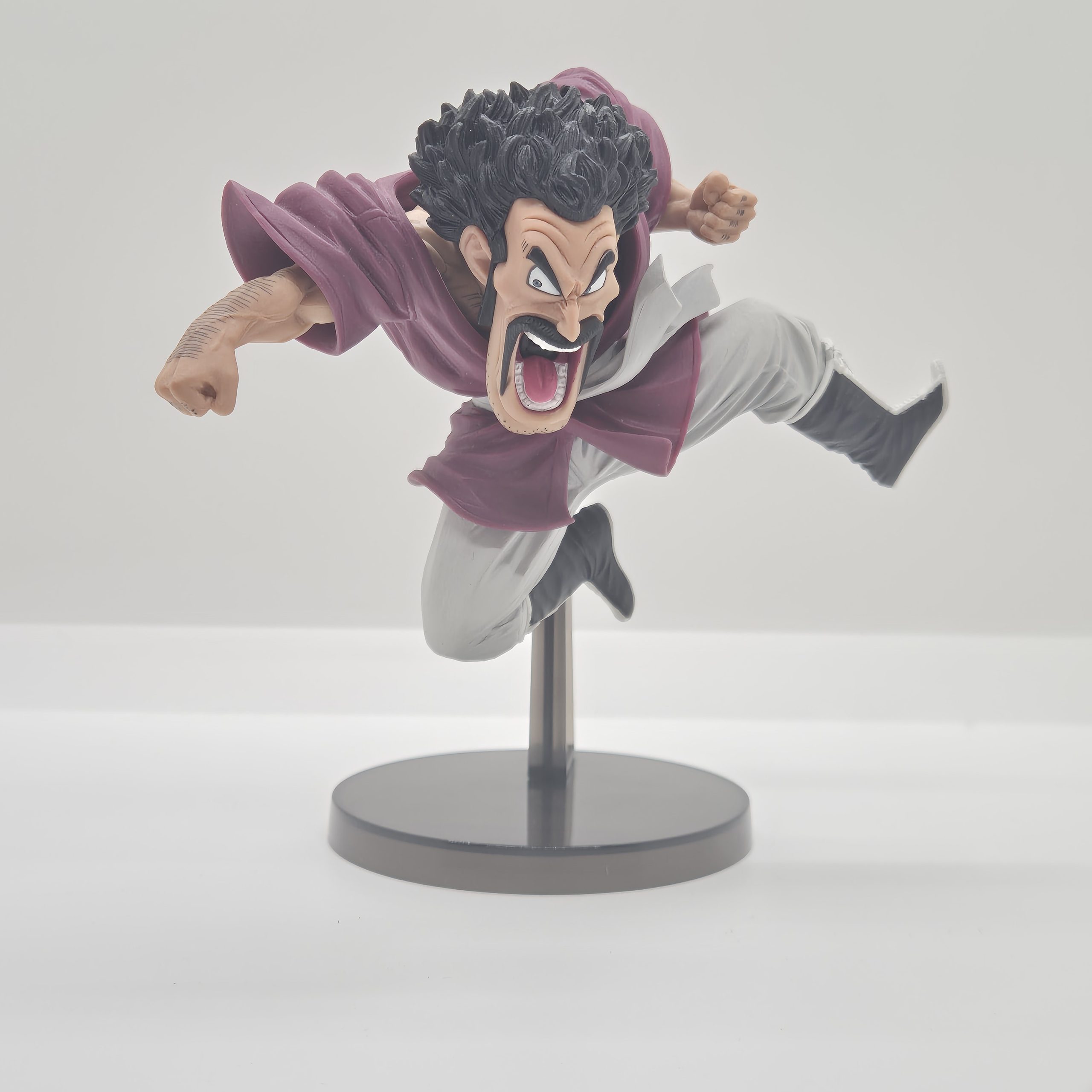 Mr. Satan, noto per essere il campione indiscusso del Torneo Mondiale di Arti Marziali (almeno secondo lui), è rappresentato con un incredibile livello di dettaglio che cattura il suo carattere esuberante. Il suo mantello svolazza dietro di lui, aggiungendo un tocco di drammaticità alla posa. Questa action figure è realizzata in PVC di alta qualità e misura circa 17 cm, perfetta per essere esposta su una mensola o in una vetrina accanto agli altri personaggi di Dragon Ball Z. La base inclusa garantisce stabilità e permette di posizionare Mr. Satan in bella vista, pronto a “proteggere” la Terra con la sua imbattibile (o quasi) forza.