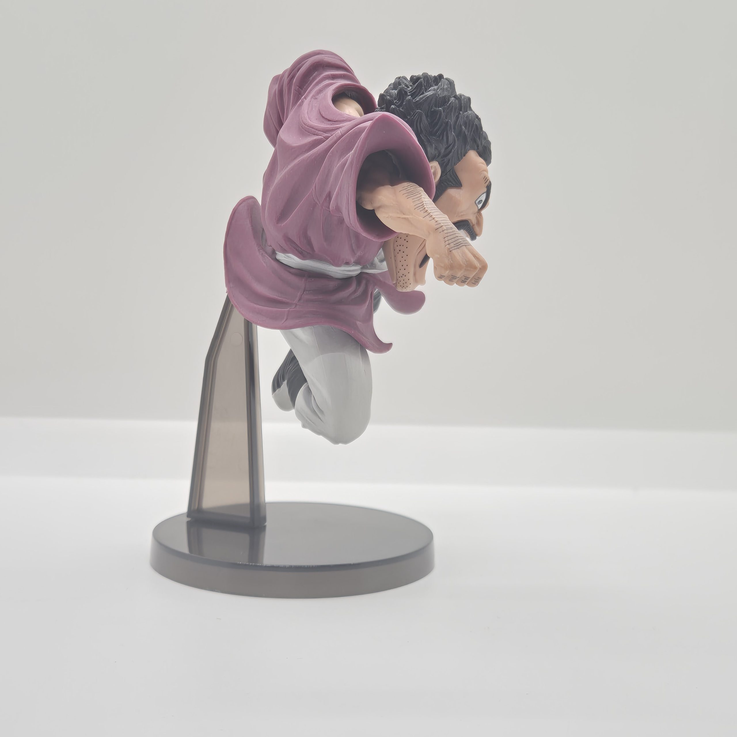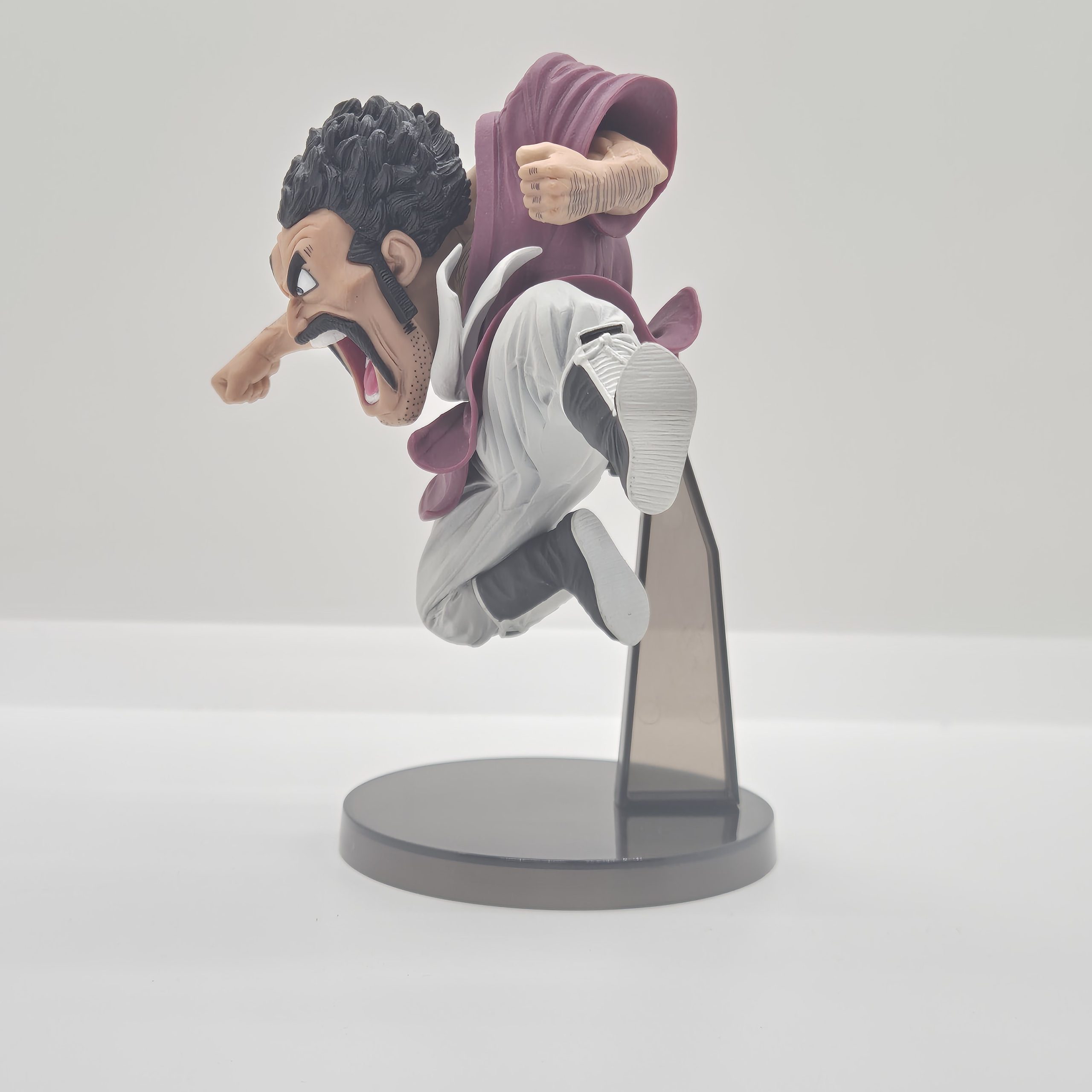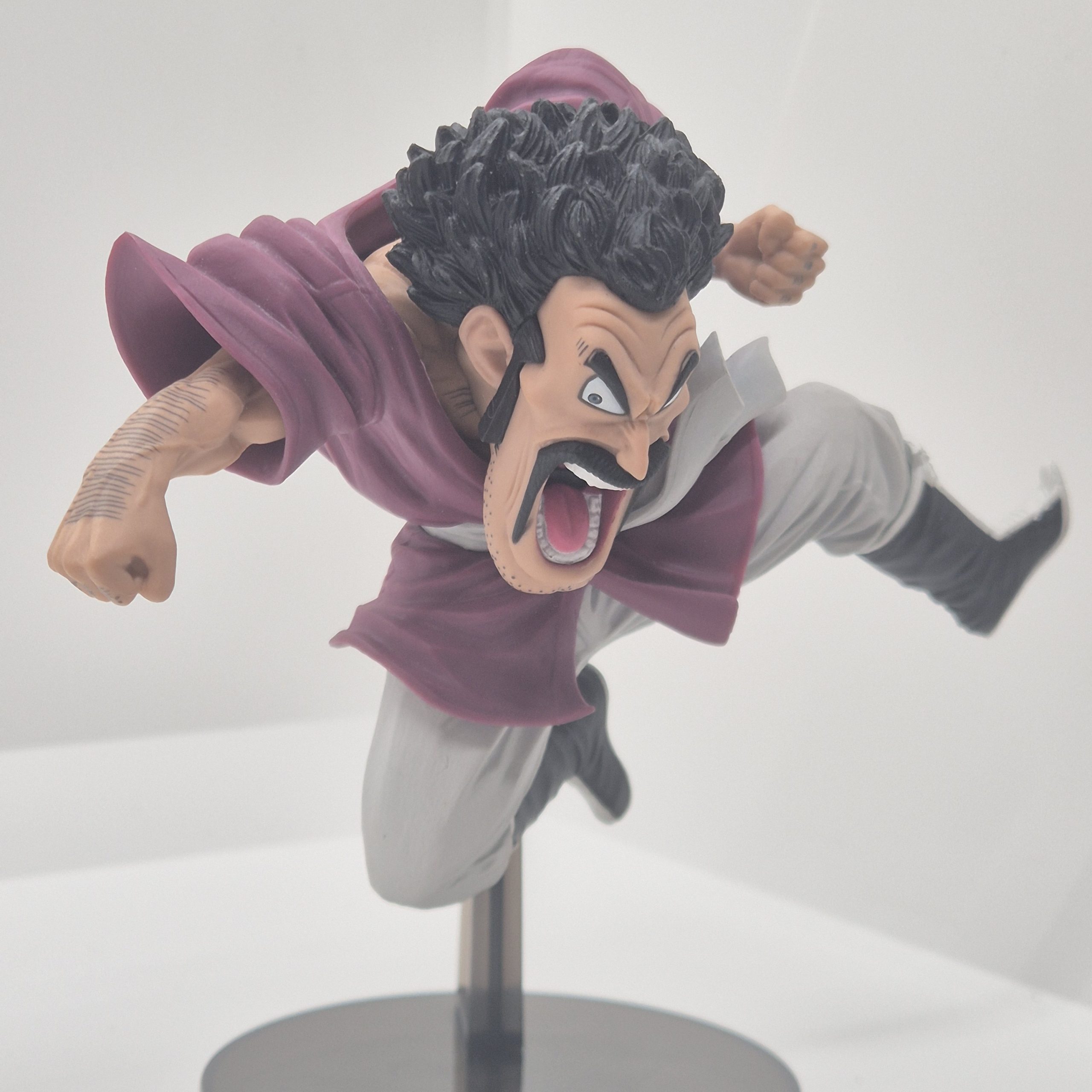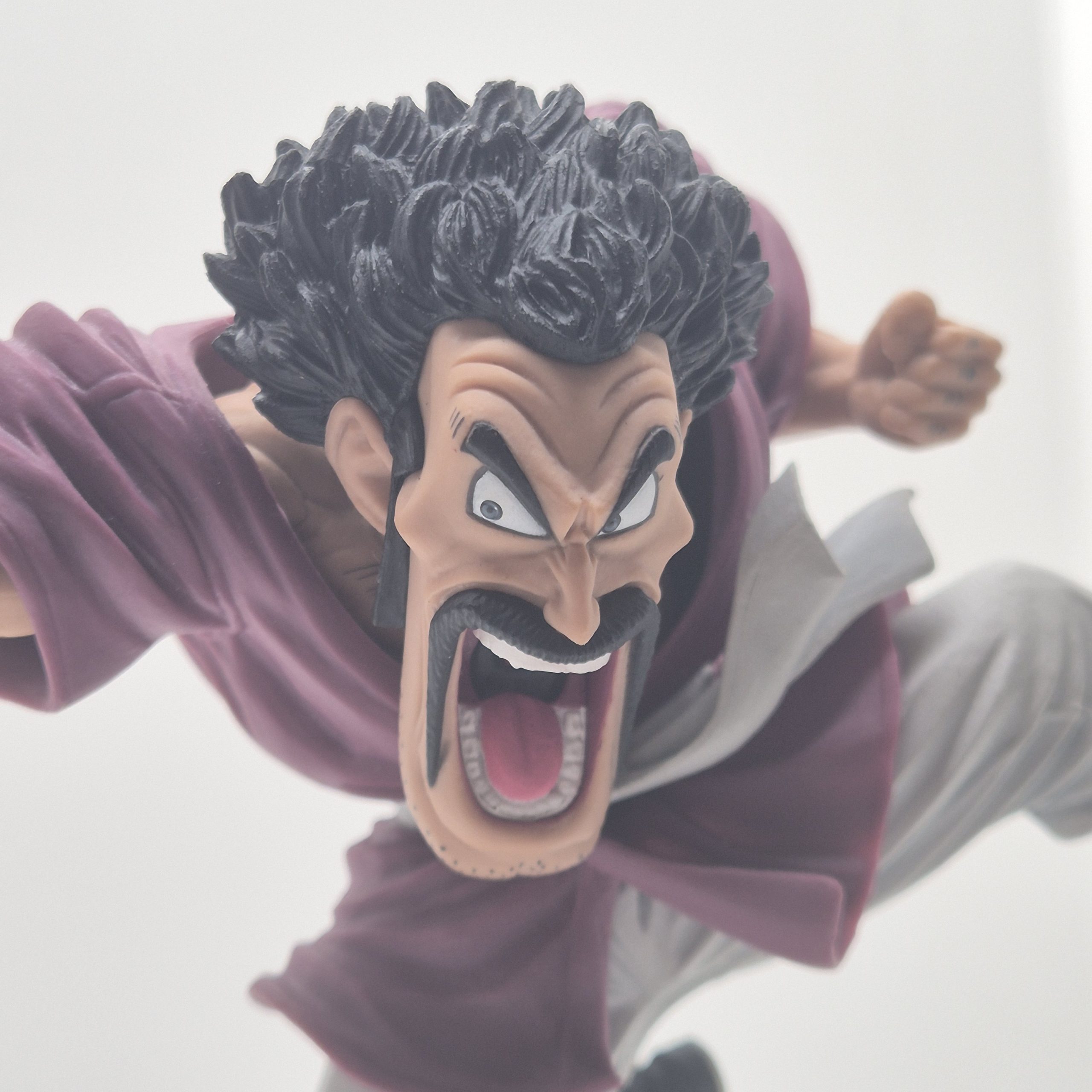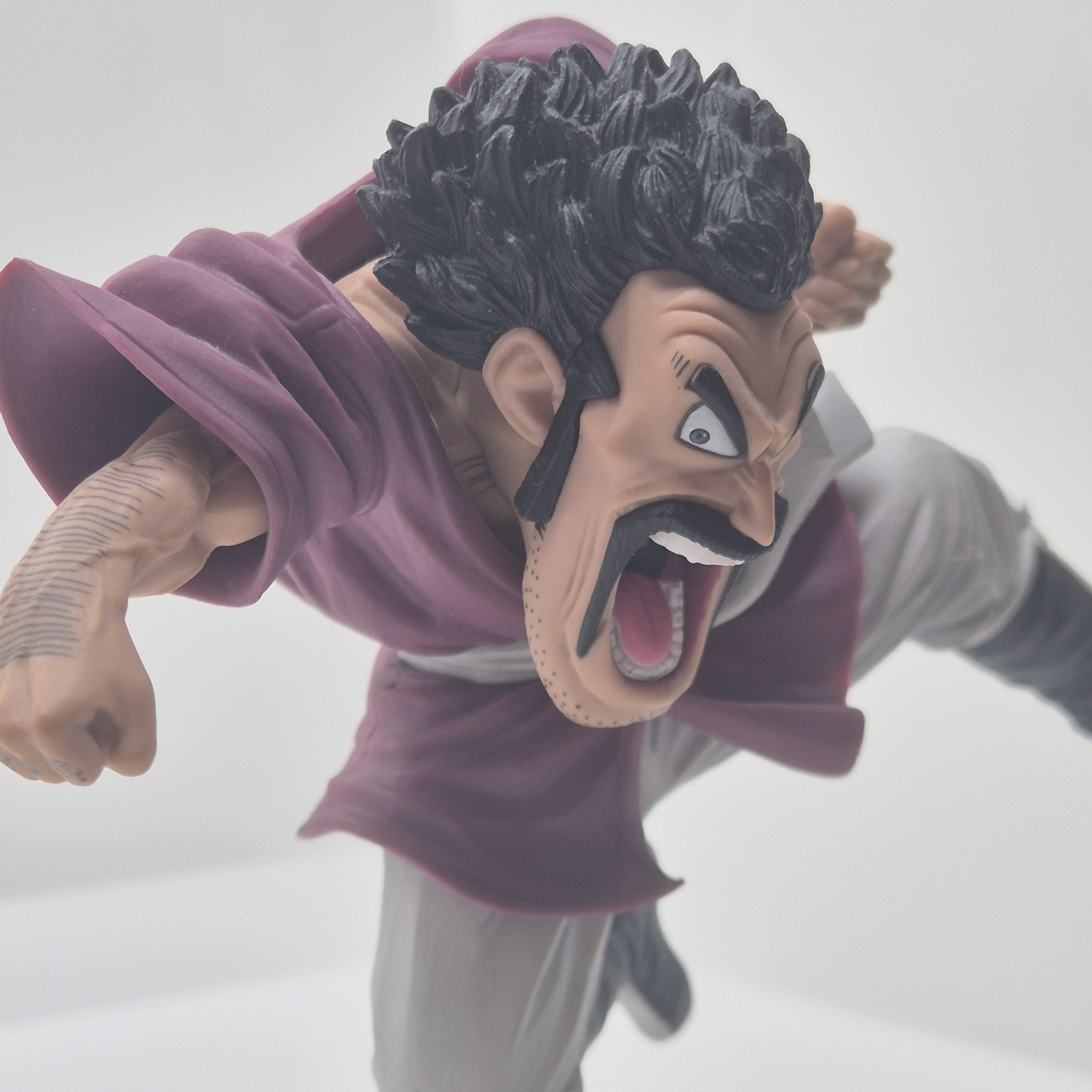 Questa statuetta cattura perfettamente l’essenza di Mr. Satan, mostrandolo in una posa trionfante. L’attenzione ai dettagli è straordinaria: dai riccioli della sua folta capigliatura alla sua iconica barba, ogni elemento è riprodotto con estrema fedeltà all’anime. Il suo tradizionale dogi da arti marziali, color vinaccia con cintura chiara, è scolpito con pieghe realistiche che danno un senso di movimento e dinamicità alla figure.