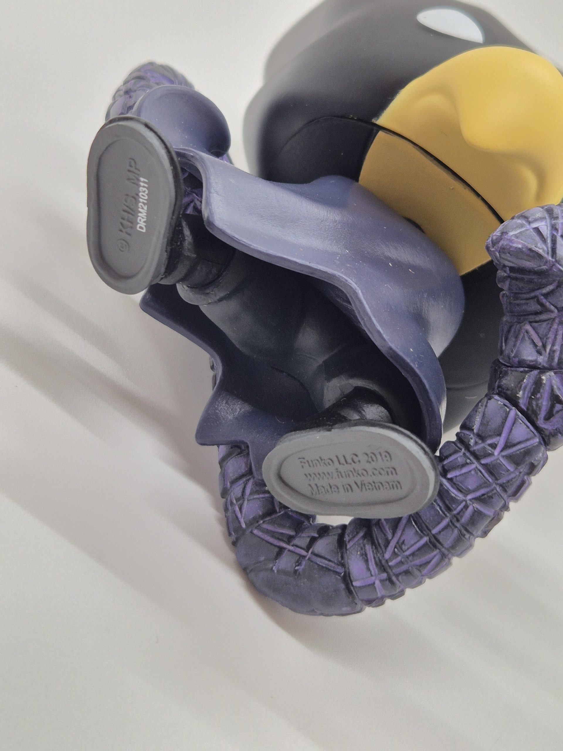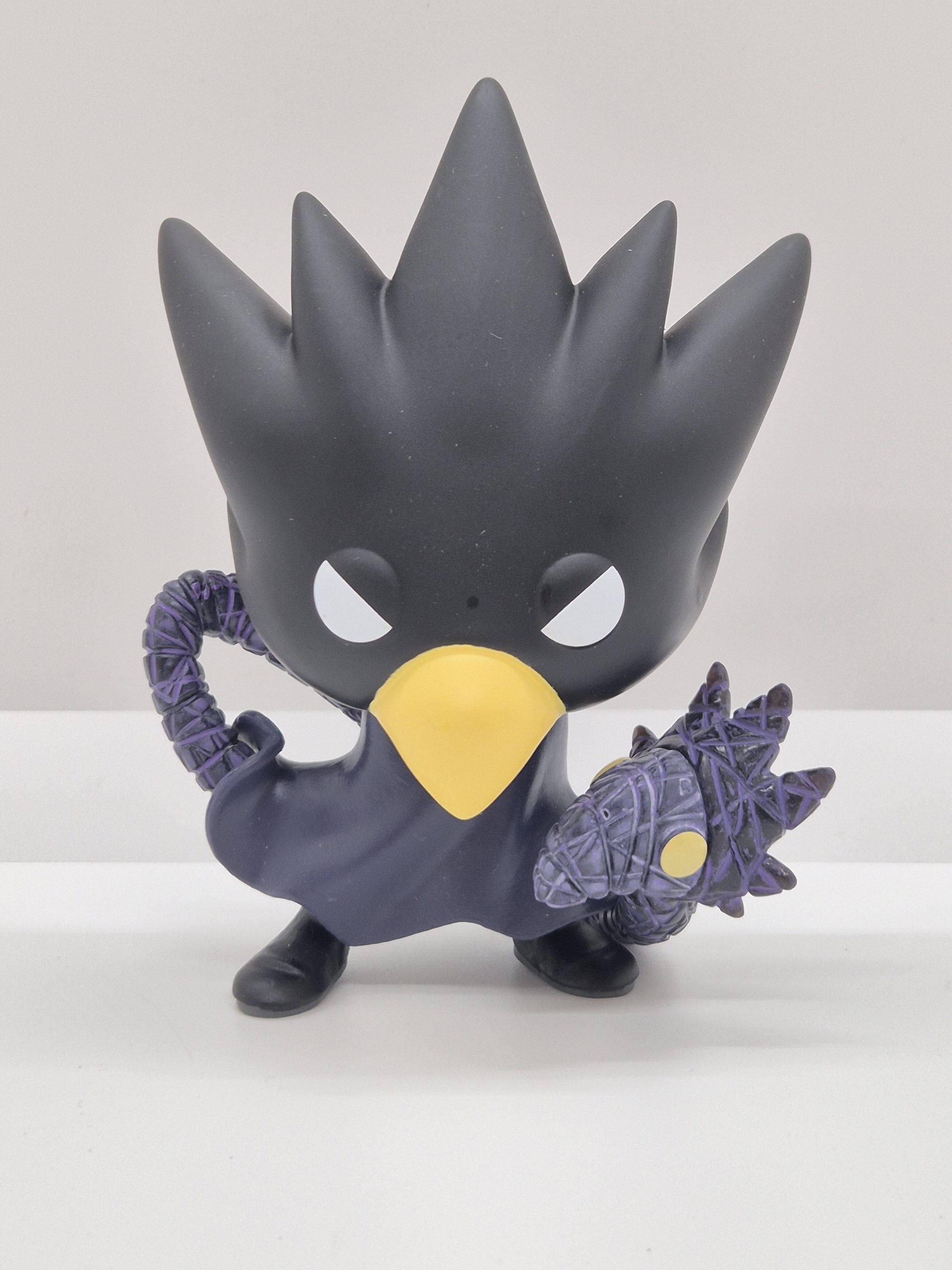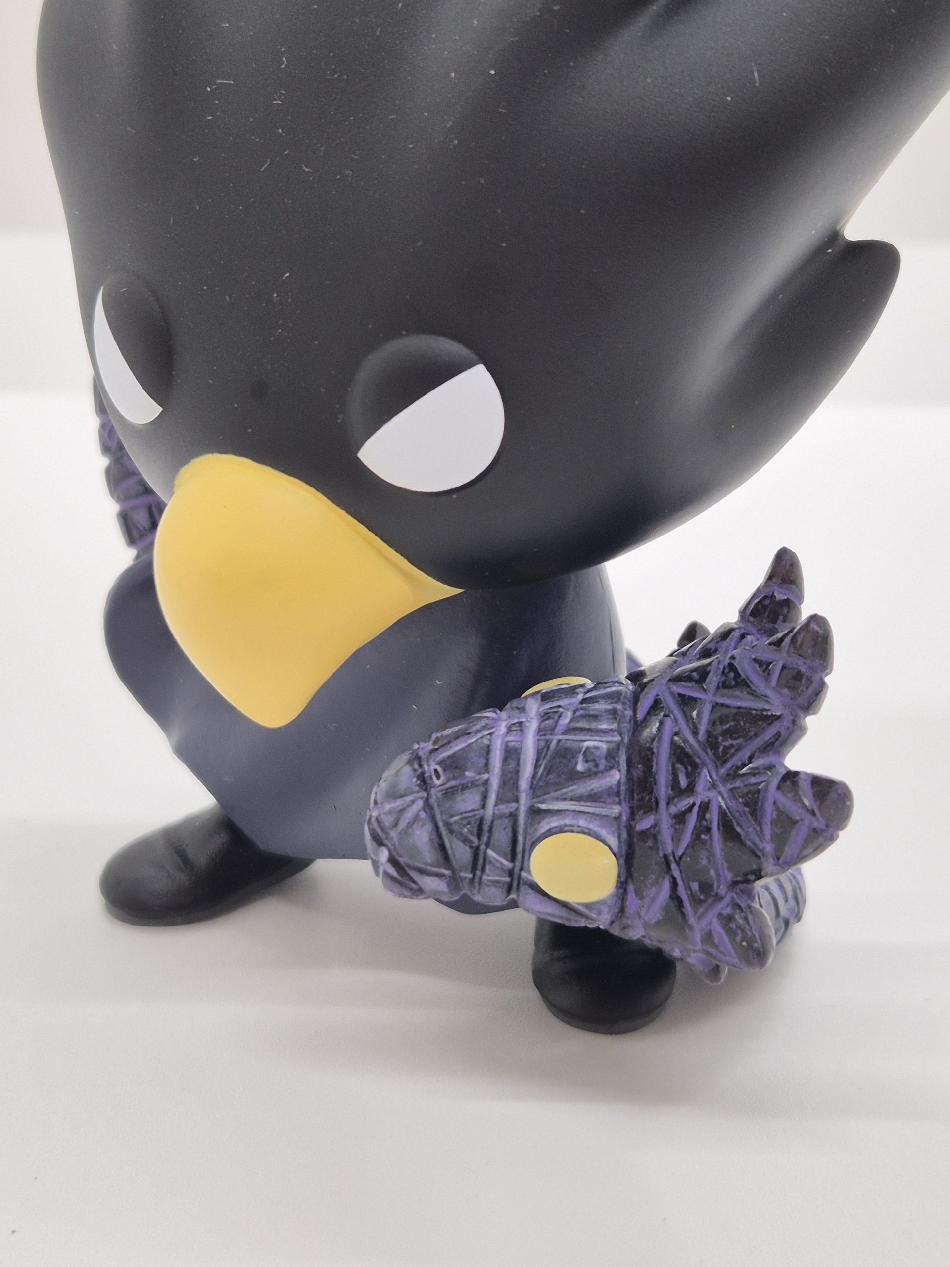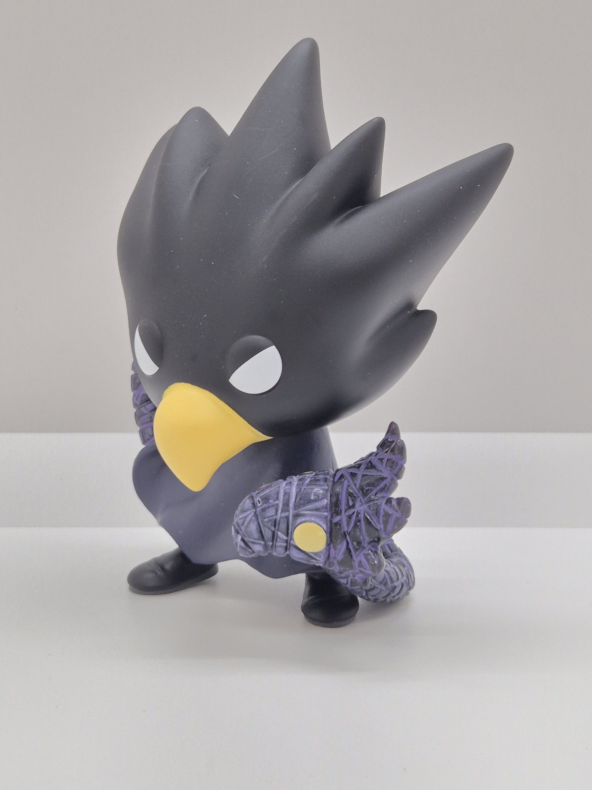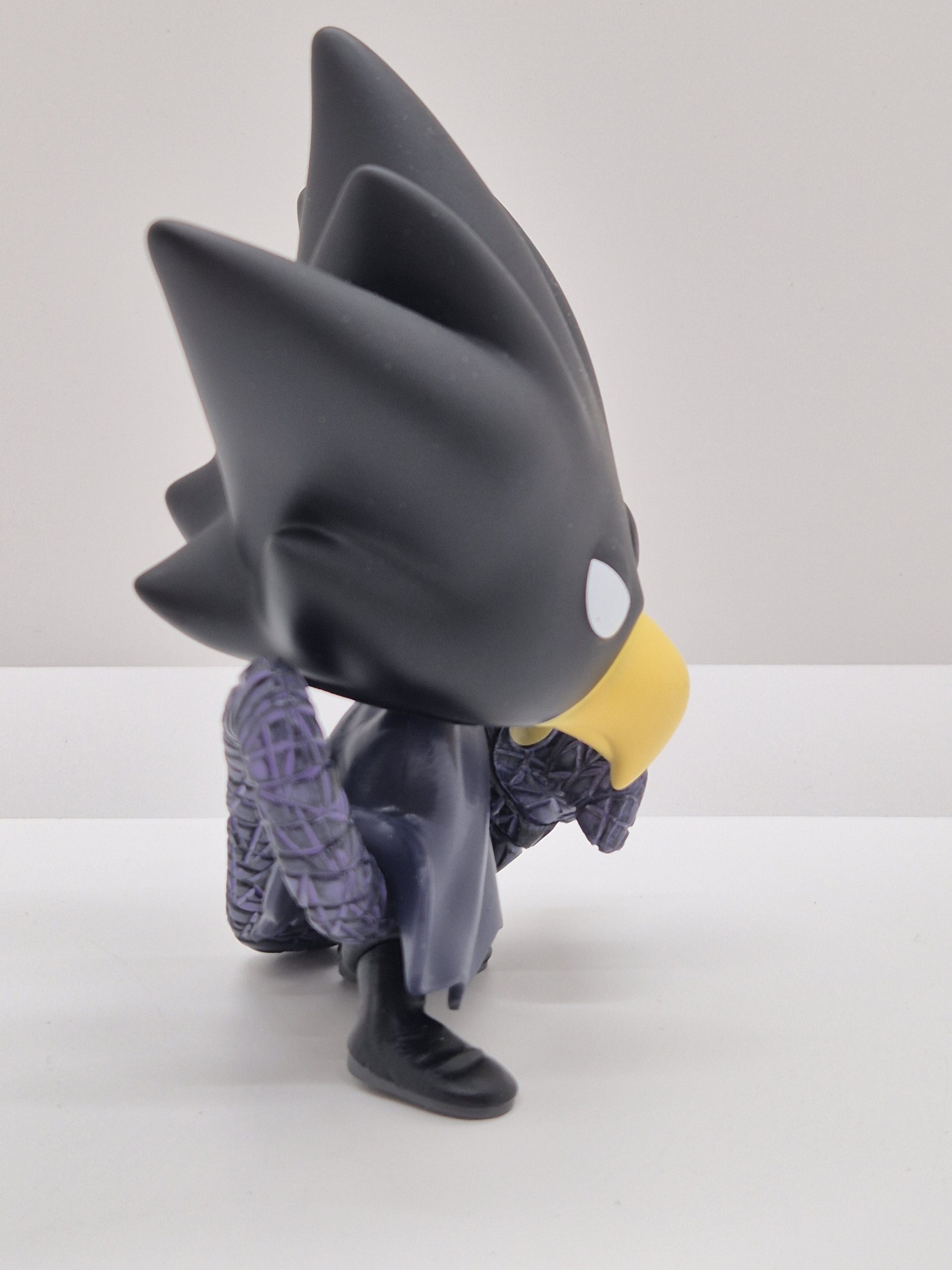 Il design stilizzato della Funko Pop! si adatta particolarmente bene a Tokoyami, il cui aspetto già particolare – un corpo umanoide con una testa simile a un corvo – è unico nel mondo degli eroi. La figure raffigura Tokoyami nel suo iconico costume da eroe, che è stato riprodotto con cura. Il mantello scuro e la tunica viola, caratteristici del suo outfit, conferiscono alla figura un’aria imponente e tenebrosa, in linea con la sua personalità riflessiva e introversa. La testa di Tokoyami, con il suo becco affilato e i profondi occhi gialli, è resa in modo dettagliato, catturando l’essenza del personaggio.