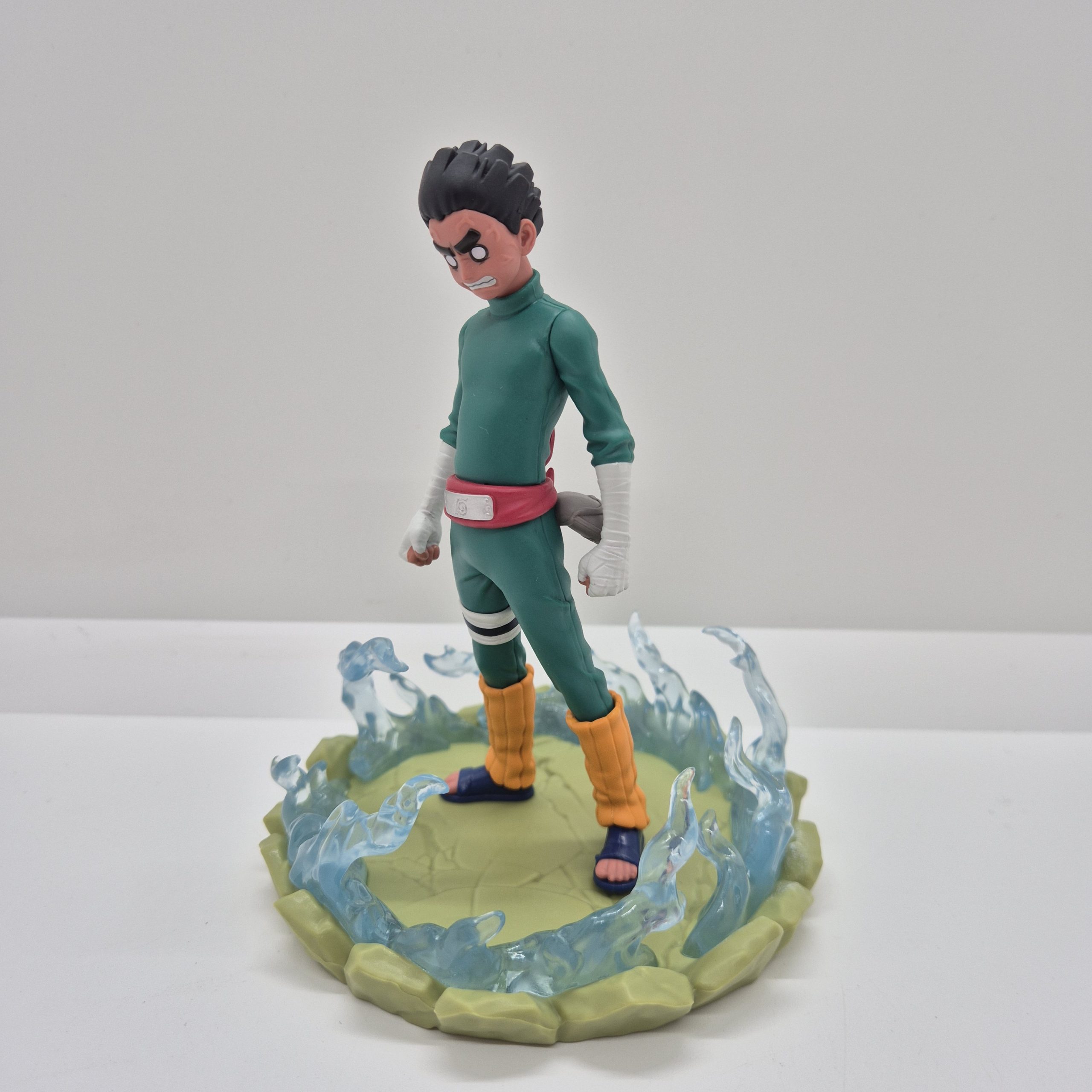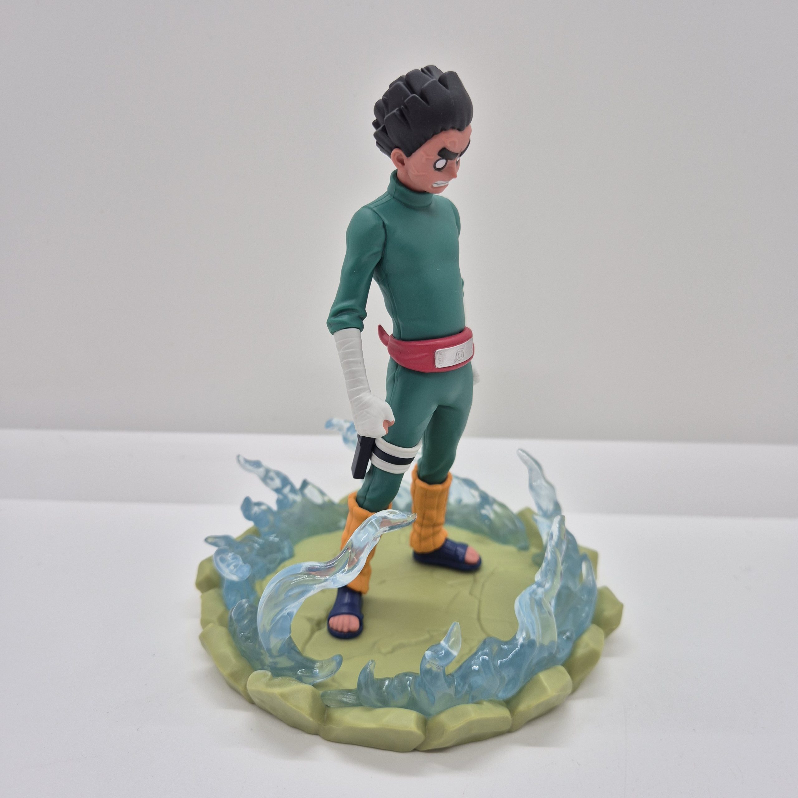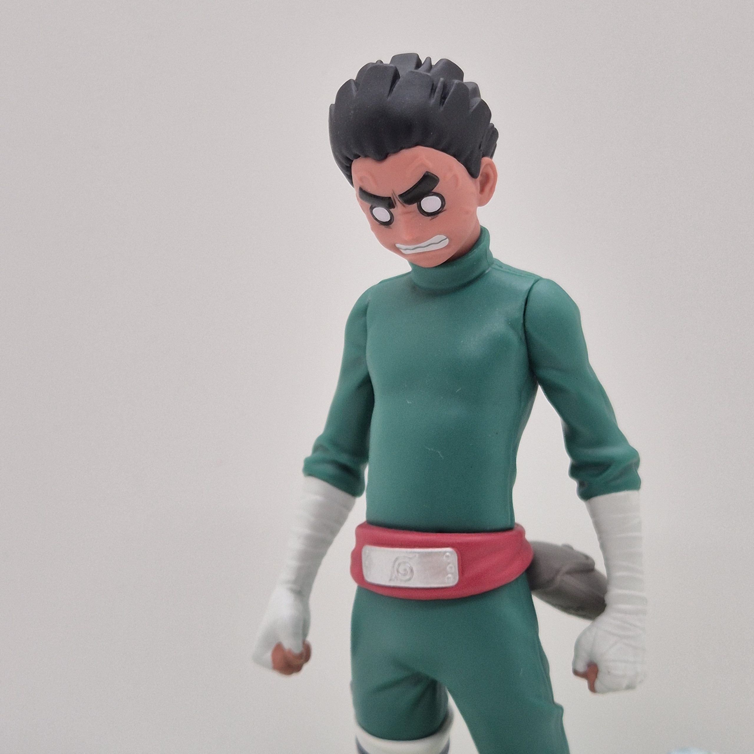 La figure, alta circa 15 cm, è realizzata in PVC di alta qualità, con una lavorazione attenta ai dettagli: la muscolatura tesa, la postura spinta in avanti, i capelli scolpiti con precisione e l’espressione determinata raccontano senza parole la battaglia che Lee combatte contro i propri limiti. Questo non è solo un oggetto da collezione, ma una scena scolpita nella memoria di chiunque abbia seguito Naruto.