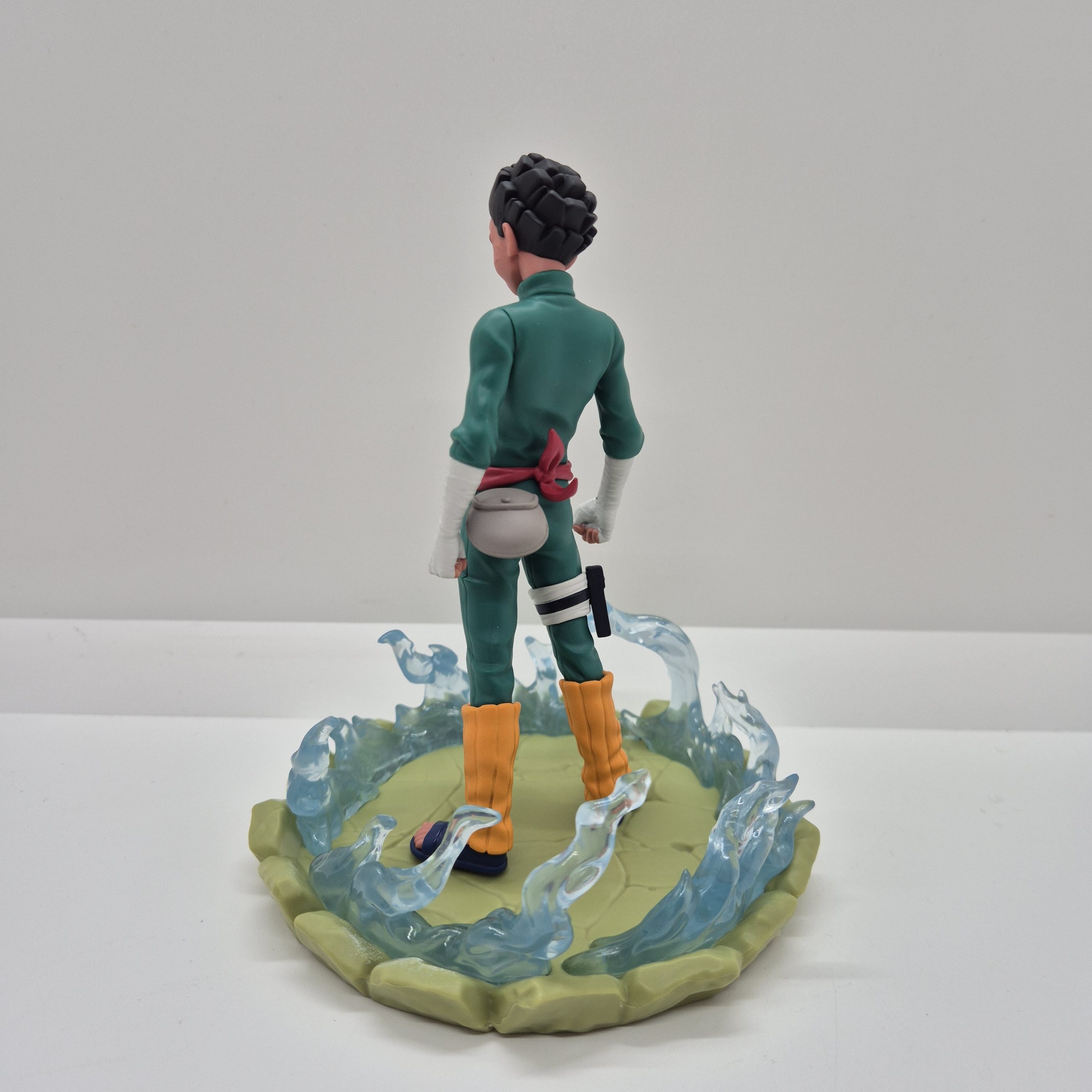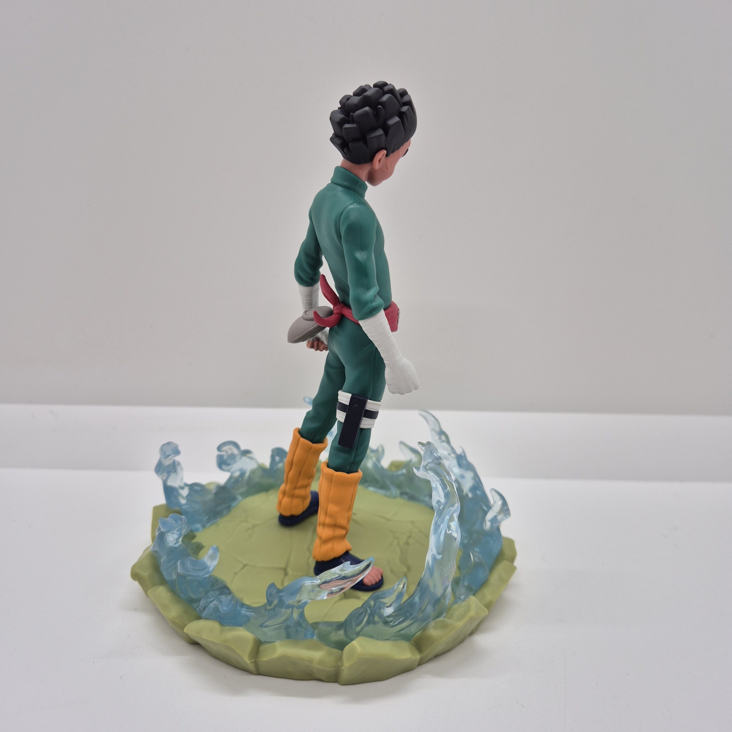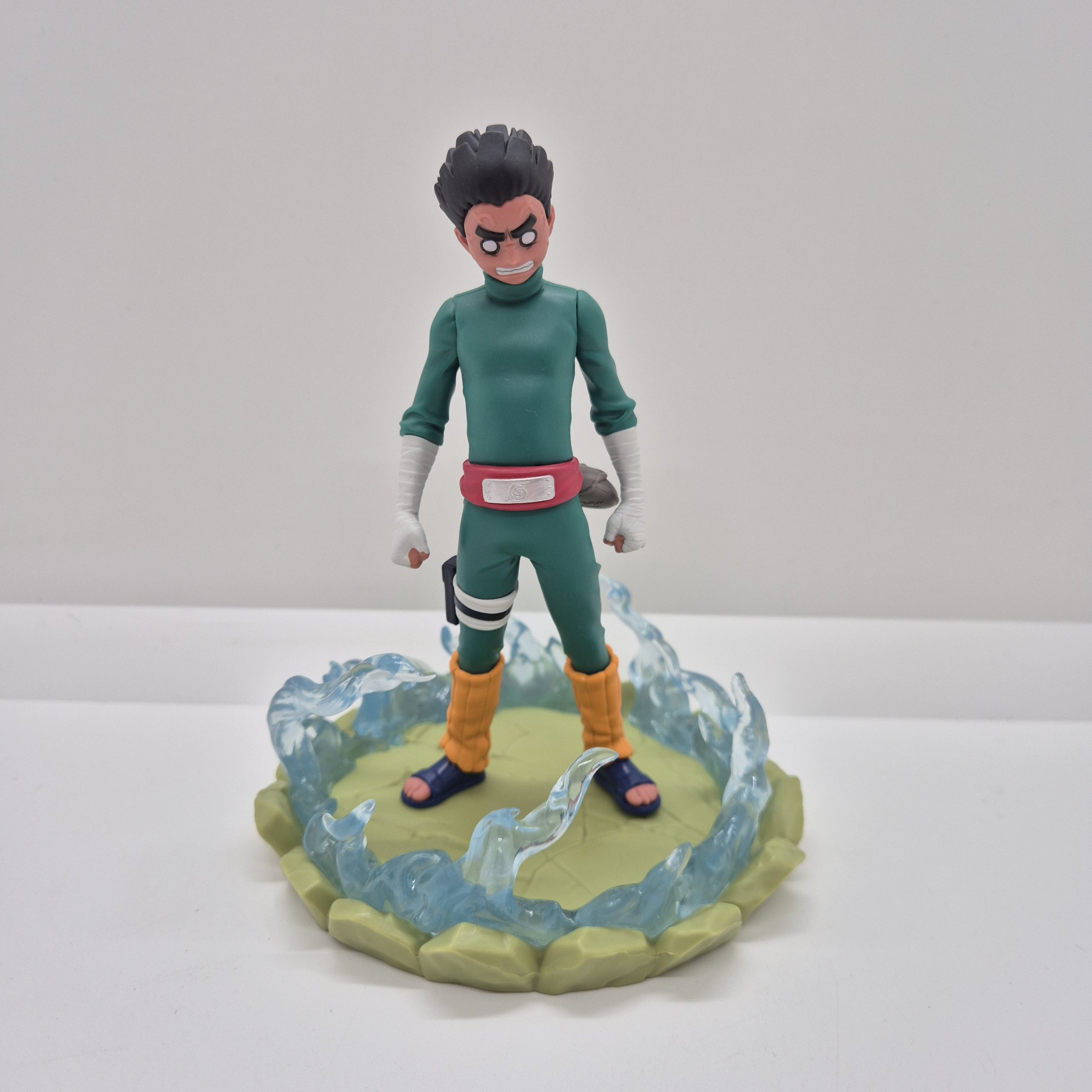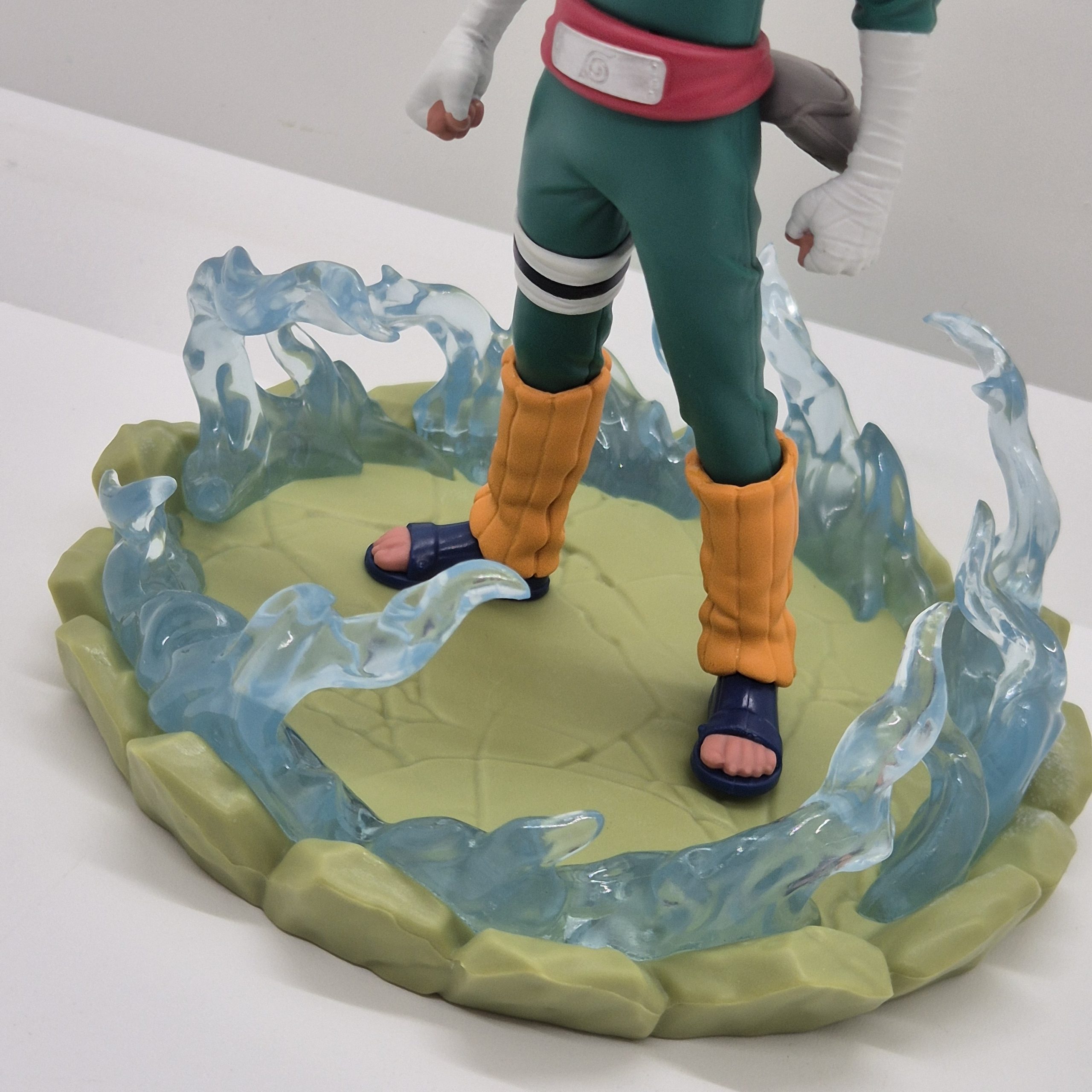 La figure, alta circa 15 cm, è realizzata in PVC di alta qualità, con una lavorazione attenta ai dettagli: la muscolatura tesa, la postura spinta in avanti, i capelli scolpiti con precisione e l’espressione determinata raccontano senza parole la battaglia che Lee combatte contro i propri limiti. Questo non è solo un oggetto da collezione, ma una scena scolpita nella memoria di chiunque abbia seguito Naruto.