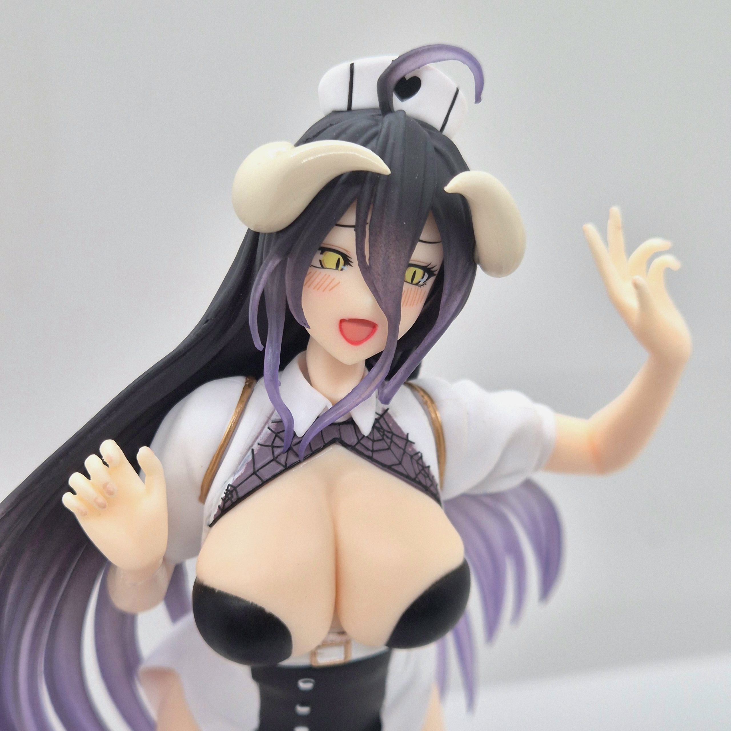 Alta circa 18 cm, questa figure realizzata in PVC cattura un perfetto equilibrio tra eleganza e seduzione. Albedo indossa un abito da infermiera aderente e raffinato, con delicati dettagli in rilievo e un delizioso tocco di innocenza invertita: un viso leggermente arrossato, un sorriso enigmatico e le classiche corna demoniache che emergono dal copricapo, segno della sua duplice natura, dolce e potente