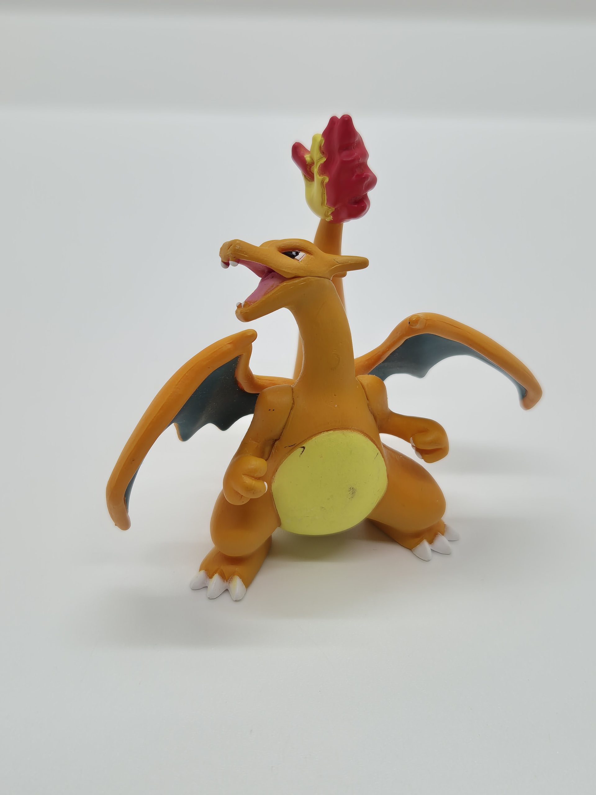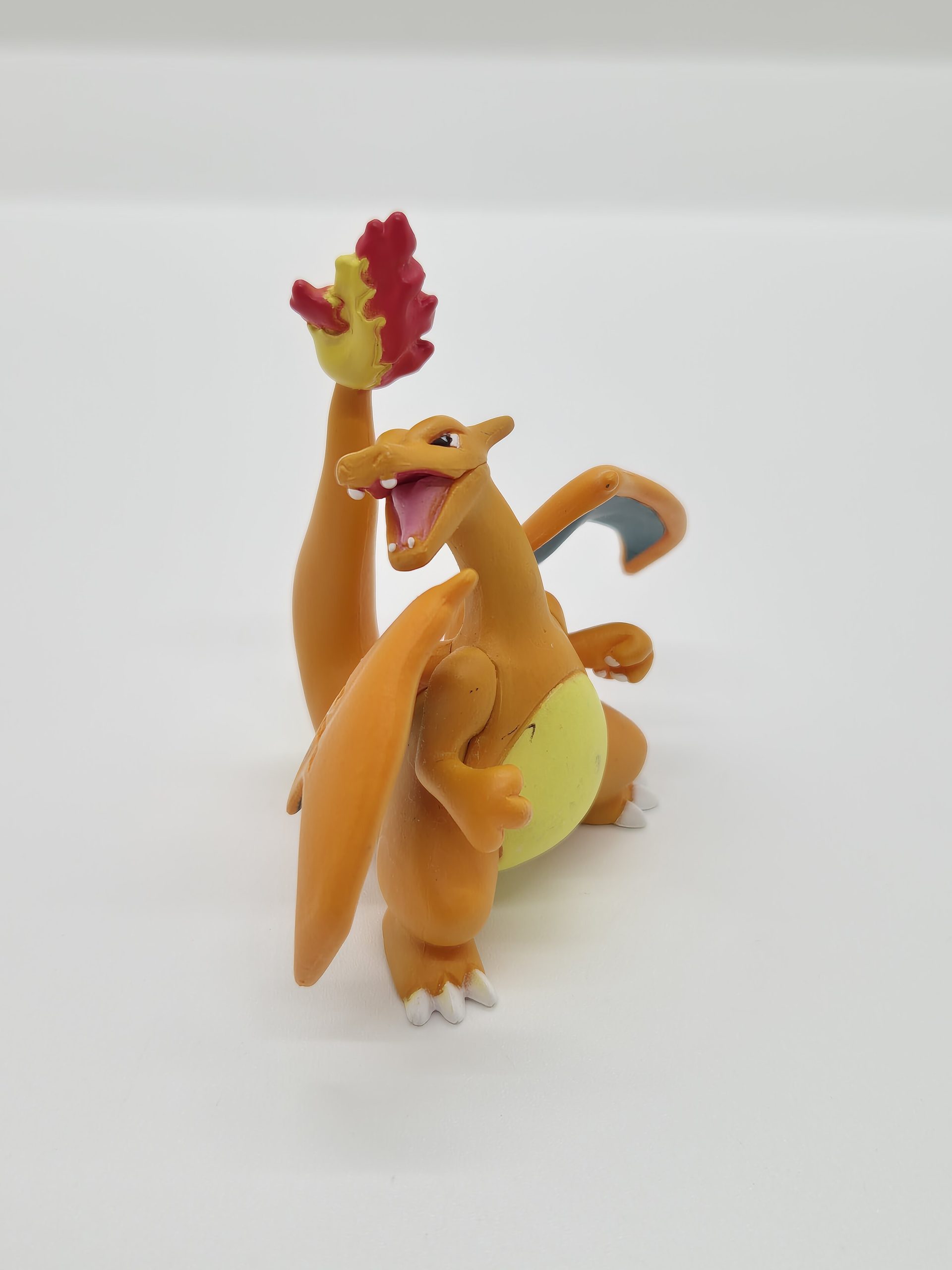 Charizard (in due varianti): Il pezzo forte di questo set è rappresentato dalle due figure di Charizard, uno dei Pokémon più potenti e amati della prima generazione. La prima figure di Charizard lo ritrae in una posa d’attacco, con le ali spiegate e le fauci spalancate, pronto a lanciare una delle sue devastanti fiammate. La sua presenza imponente è resa ancora più drammatica dai dettagli realistici delle ali, delle scaglie e della fiamma. La seconda figure offre una posa leggermente diversa, che esprime potenza e fierezza. Anche in questa variante, la cura per i dettagli è impeccabile, dai colori vivaci alle ali possenti che rappresentano la sua capacità di volo. Entrambe le figure catturano l’essenza di Charizard, un Pokémon che combina forza e intelligenza in un unico, magnifico design.
