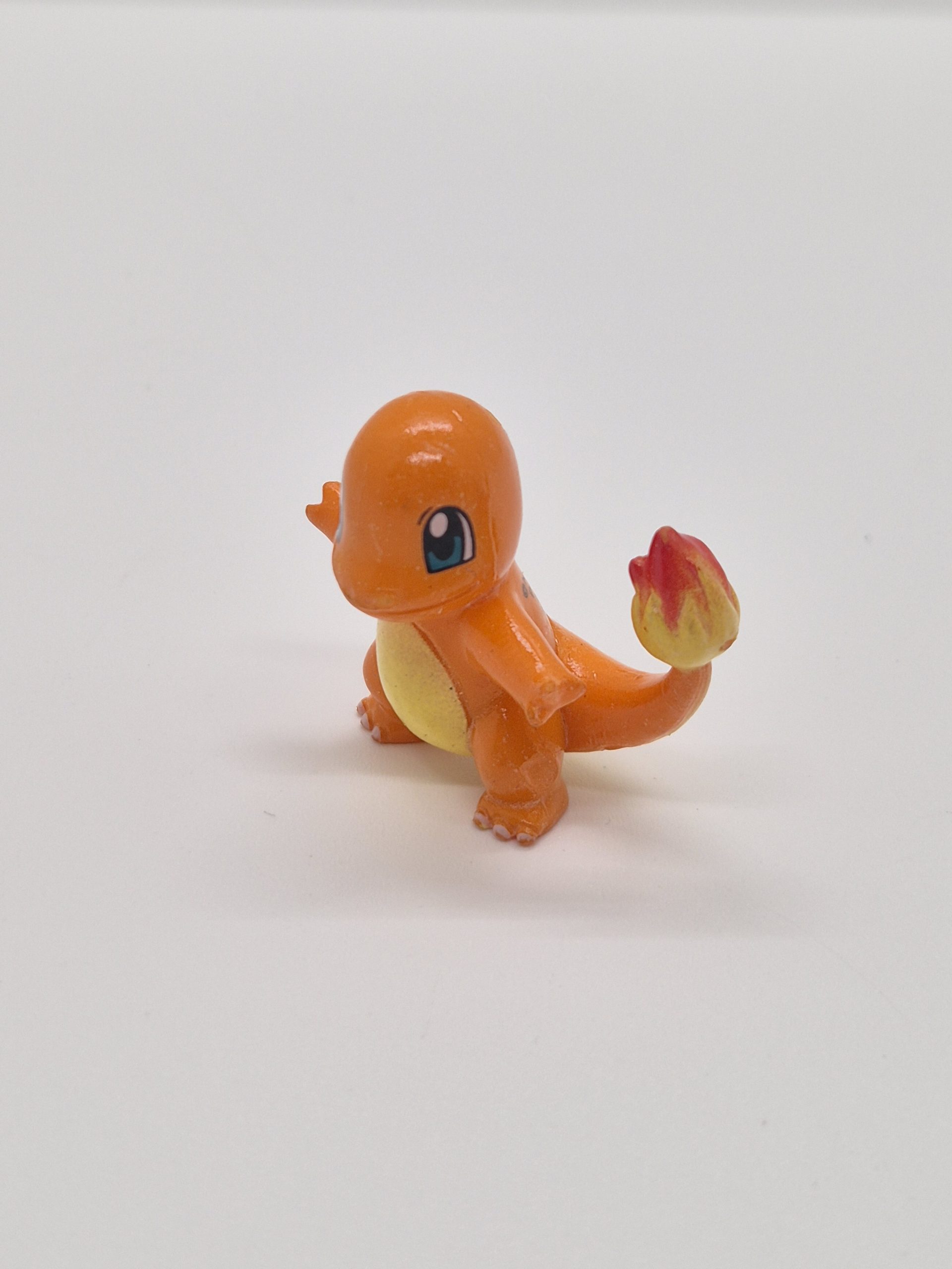 Charmander: Il piccolo e coraggioso Charmander è raffigurato con la sua espressione curiosa e il fuoco acceso sulla punta della coda, che simboleggia la sua energia in crescita. La mini figura di Charmander cattura il carattere vivace e determinato di questo Pokémon di tipo Fuoco. I dettagli del viso, del corpo e della fiamma sono riprodotti con grande precisione, offrendo una versione fedele del Pokémon che tanti allenatori scelgono come primo compagno di viaggio. Il piccolo Charmander è raffigurato in una posa dinamica, pronto ad affrontare nuove avventure e a evolversi.