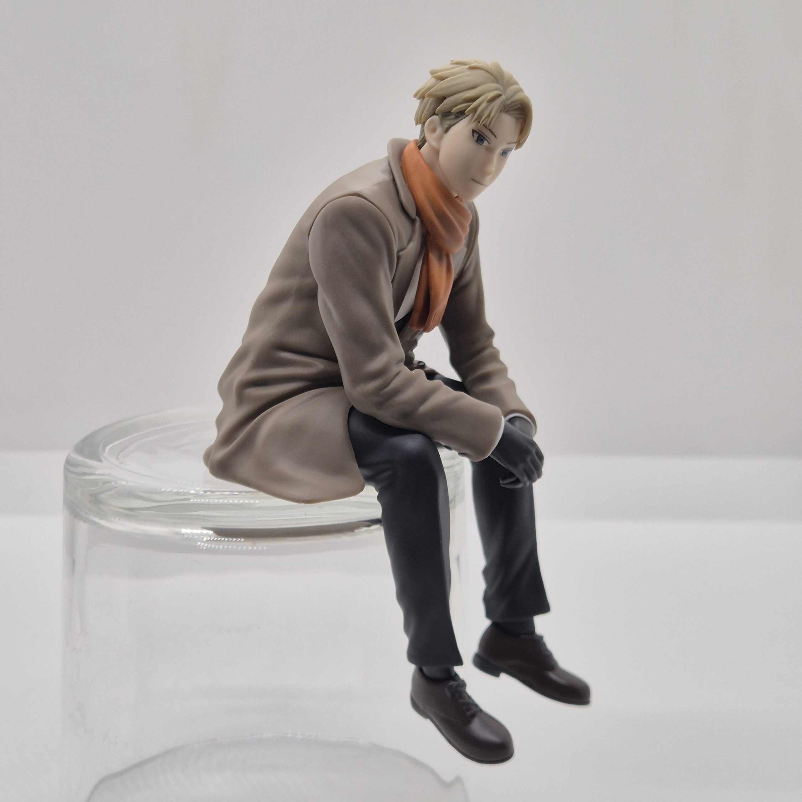 La figure raffigura Loid in una posa composta e rilassata, che trasmette concentrazione e autocontrollo. L’atteggiamento è calmo, quasi meditativo, e richiama quei momenti in cui il personaggio appare immerso nei propri pensieri, sempre un passo avanti rispetto a ciò che lo circonda. L’espressione del volto è curata e fedele, con uno sguardo serio ma non rigido, capace di comunicare immediatamente l’identità del personaggio anche senza elementi dinamici o d’azione.