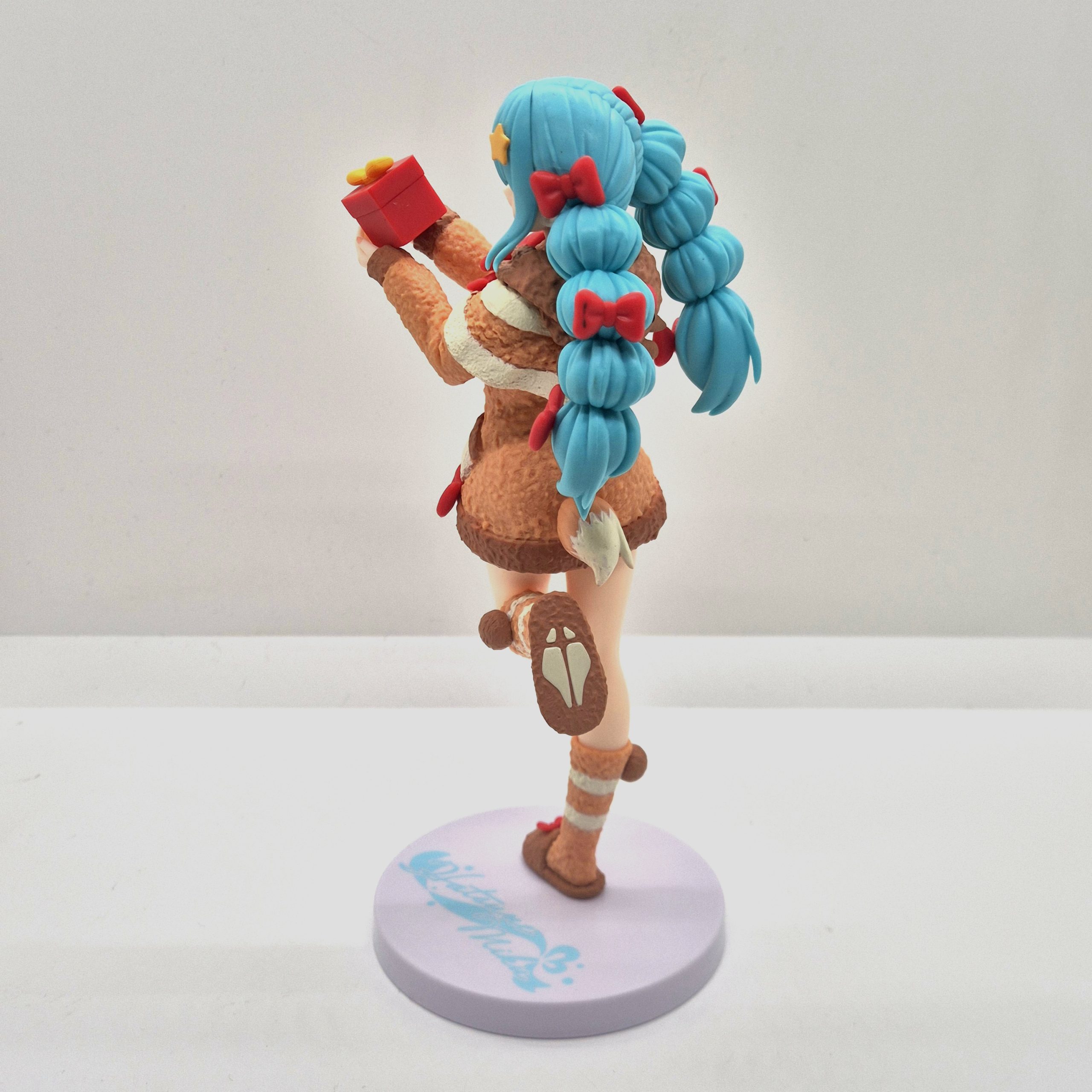 Miku tiene tra le mani un pacchetto regalo, simbolo di generosità natalizia, mentre la sua posa dinamica – un lieve sollevamento del piede e lo sguardo gioioso rivolto verso l’alto – trasmette un’immediata sensazione di gioia e festa. Il sorriso è contagioso: sembra stia per consegnare il dono proprio a te, riempiendo la stanza di allegria invernale.